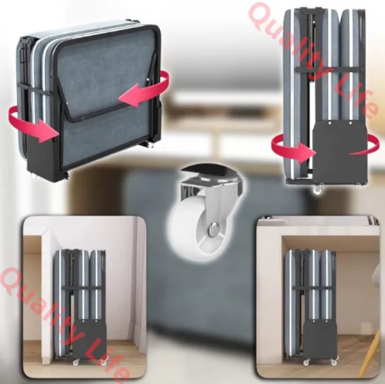 【360°回転ホイールで簡単に移動】当社のシングル折りたたみベッドには、移動性を保証するために5つの柔軟で滑らかなホイールが装備されています。 360°回転ホイールのおかげで、必要に応じてどこにでも簡単に移動または持ち運ぶことができます。キャンプ、旅行などに最適です。 ?