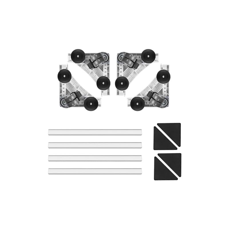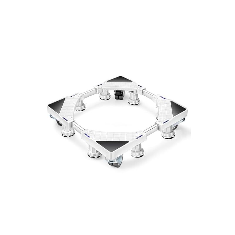 Bexeze 洗濯機 台 キャスター 8足4輪 付き 洗濯機かさ上げ台 360°回転 奥行き47-67伸縮可能 移動式 昇降可能 騒音対策 減音効果 耐荷重500kg 防振パッド付き 全自動式対応 冷蔵庫台 (ホワイト) 1