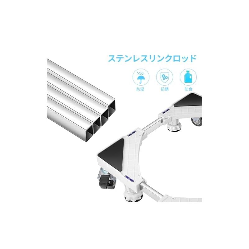 【高品質素材】良質なステンレス材とポリエチレンを採用して、優れた安定性を保ち、腐食に耐えます。360度移動でき,耐荷重を500kgまで実現します。ゴム製キャスターの車輪とジャッキ底のゴム製マット。洗濯機が作動する時の振動と異音を吸収します。床を保護、キズ・色移りの心配も要らない。 ★