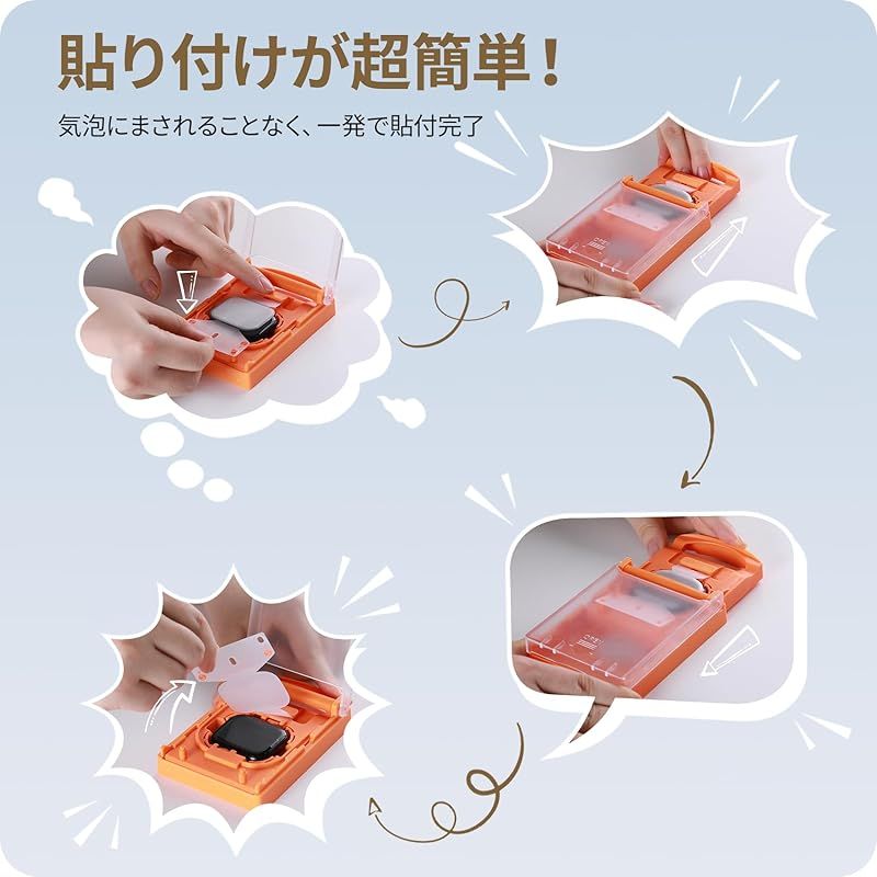 【貼付け超簡単】人気のNIMASOがついに、初めての方でも簡単に貼り付けることができるガイド枠を発売いたしました!これで貼付けはさらに簡単に!watchをガイド枠に置いて、フィルムを説明書通りに貼るだけで気泡やズレの心配はありません。貼付けの動画もご用意しておりますので、貼付け前にご確認いただくことをおすすめいたします。
