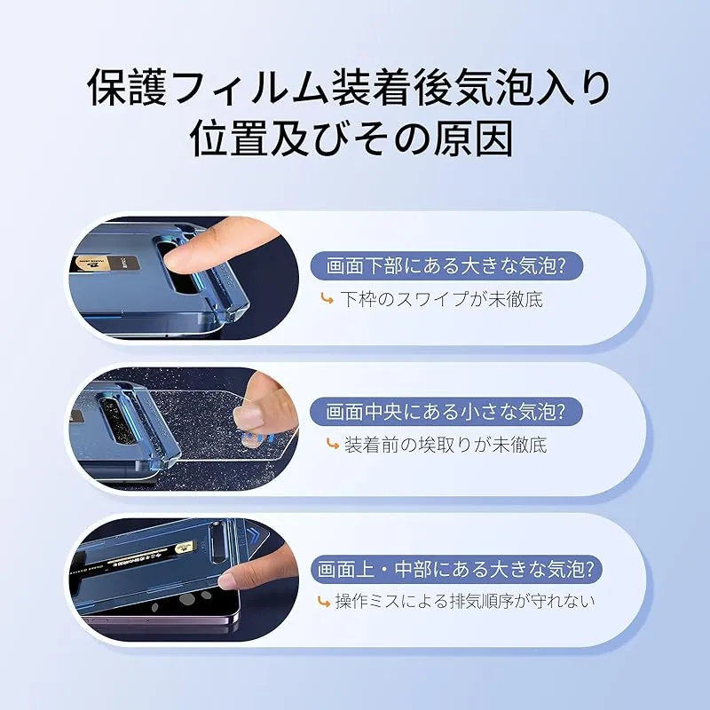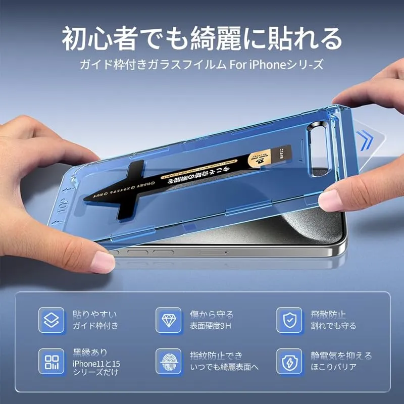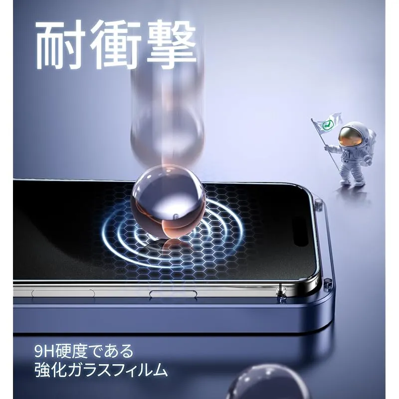 【もう失敗はしない】本製品はiPhone 15 Pro Maxに対応するプライバシーフィルム2枚セットです。百万以上の欧米ユーザーのフィドバックを集めて日々改善したガイド枠は、3歩だけで保護フィルムを貼り付けます。そのうえ、自動ホコリ取りデザインだけでなく、ガイド枠のスロープデザインで、空気を順序に取り除くことができて、初心者でも気泡レスのまま綺麗に貼れます。