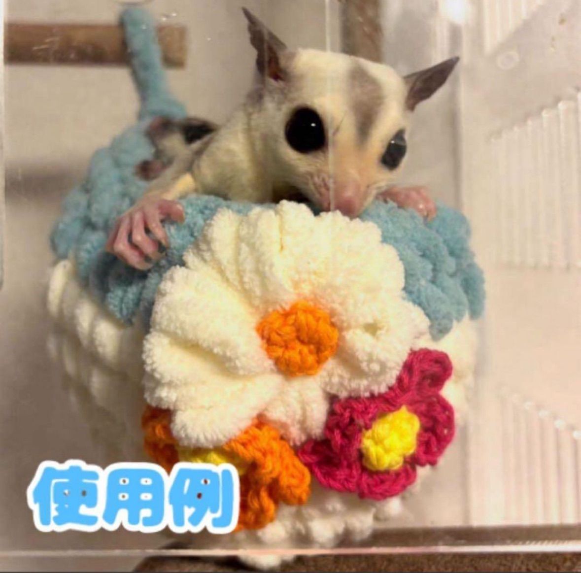 【2〜3匹用のモモンガポーチです】 我が家のモモンガがは3匹入ったりしています⭐︎ 全体的にゆったりなので、ケージの外からでもポーチの中を見る事ができるので、InstagramなどのSNSでの動画や写真の撮影がかなりラクです♪ ⭐︎サイズ⭐︎(平置きでの大きさとなります) 横15㎝、縦12㎝ 入り口は少し広めでお作りしております お色、サイズ変更等、お気軽にお問い合わせください♪ ⭐︎⭐︎おまとめ割引は2個以上で200円引きにさせていただきます⭐︎⭐︎ ※畳んで発送させていただきます。 お手元に届きましたら形を整えてからご使用ください。 ※基本的に消耗品です。 ご使用中に、ほつれや穴が空いた際は、直ちに使用中止してください。 ※使用中に生じた事故、怪我、破損につきましては、責任を負いかねます。 ※素人が作っている為、完璧をお求めの方はご購入をお控えください。また、手編みにつき全く同じ物はお作りできません。なるべく同じようにお作りはさせていただきますが、ご理解、ご了承をお願いいたします。 #フクロモモンガ #モモンガ #モモンガポーチ #ポーチ #小動物 #ももんが #袋 #エキゾチックアニマル #2匹用 #3匹用 #大きめ #フクモモ #ももんが #ふくもも #もこもこ