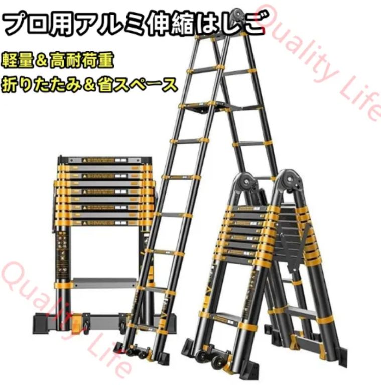 プロ用多機能アルミ伸縮はしご 3.7+3.7m 折りたたみ・スライド式で省スペース・軽量・高耐荷重 屋根・電気工事・家庭用・ロフト・オフィス対応(170CM)