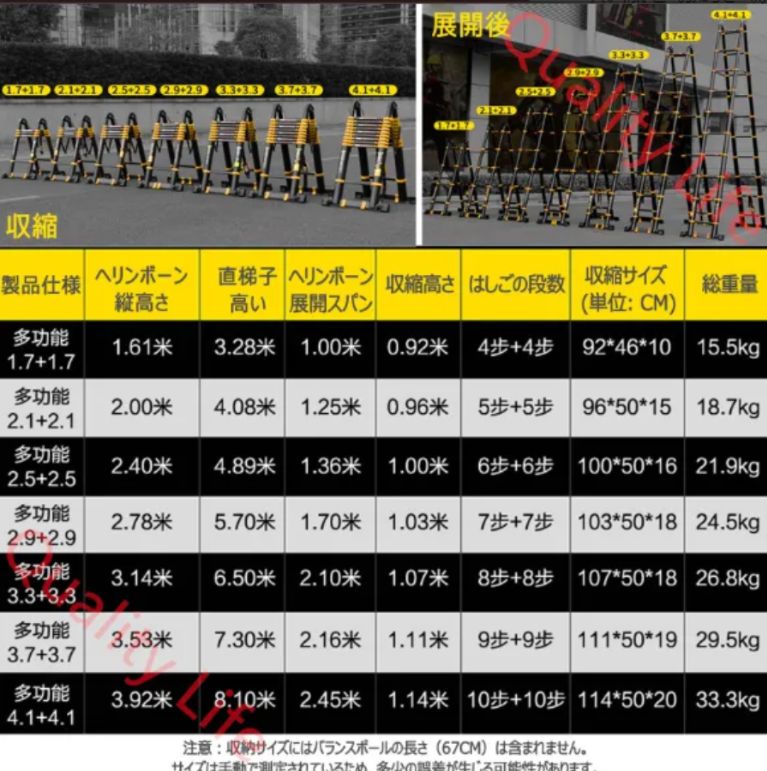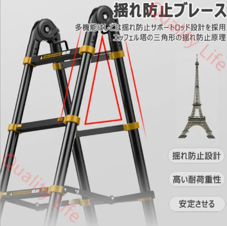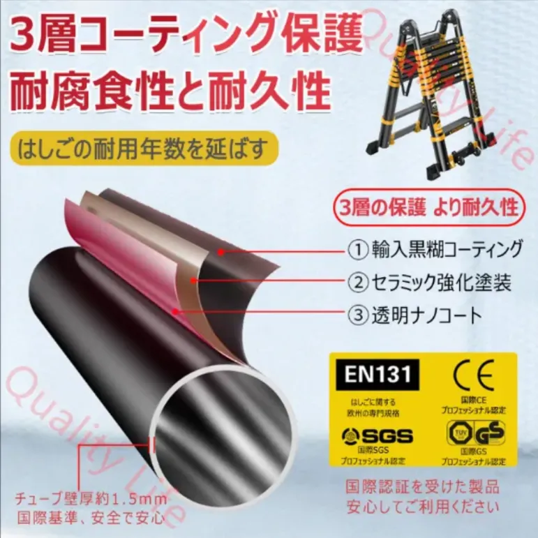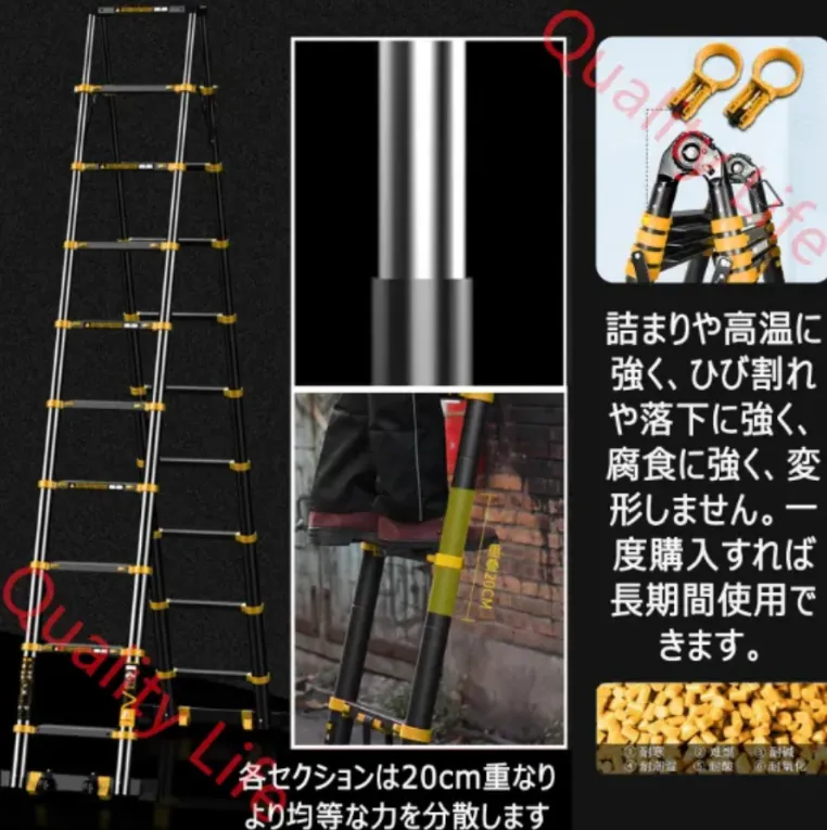 【折りたたみはしご材質】高品質のアルミニウム合金製で、強力な耐荷重と長寿命を備えています,耐久性、耐食性、防錆性に優れ、軽量でありながら丈夫な高品質のアルミ合金を使用しています。 ?