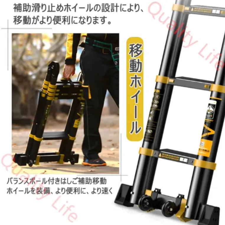 【 はしご 特徴】エンジニアリンググレードのプラスチック、耐寒性、亀裂防止、落下防止、非毒性、老化防止、4 層コーティングプロセスによる厚みのある酸化アルミニウムチューブ、重なり合って長くなったアルミニウムチューブ、丈夫で揺れない、超耐久性。幅広のペダルは安定して滑りにくく、揺れ防止の強化サポートロッド、三角形の安定性を備えています。原理設計は、より強力な耐荷重能力、より安定したはしご、および動きを容易にするポータブルプーリーを備えています。 ?