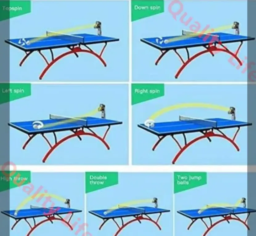 ? 複数のサービング方法:スピニングボールの設定やランディングポイントの配置に非常に適しています。トップスピン、ダウンスピン、左手、右手、混合スピン、周波数と速度の異なる9種類のスピンボール、不規則なランダムランディングポイントを送信できます。