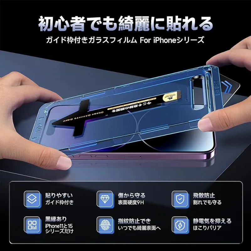 【もう失敗はしない】本製品はiPhone14/13/13Pro/16eに対応するプライバシーフィルム2枚セットです。百万以上の欧米ユーザーのフィドバックを集めて日々改善したガイド枠は、3歩だけで保護フィルムを貼り付けます。そのうえ、自動ホコリ取りデザインだけでなく、ガイド枠のスロープデザインで、空気を順序に取り除くことができて、初心者でも気泡レスのまま綺麗に貼れます。