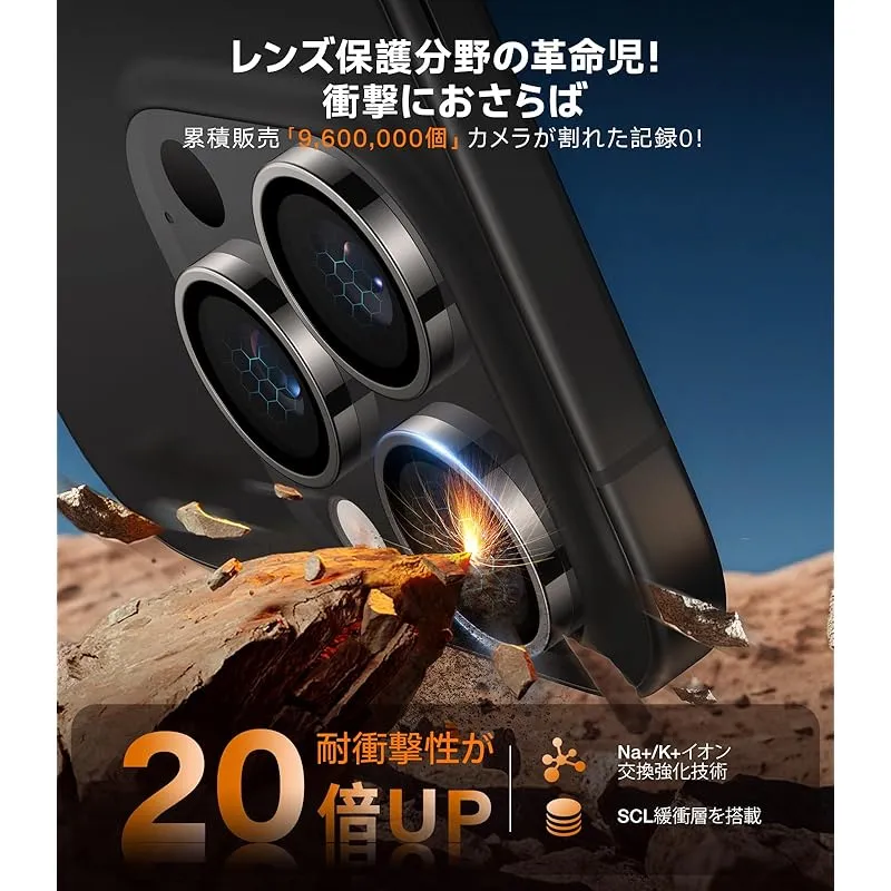 【宇宙規格の強度で、あなたの大切なカメラを守る。】TORRASのカメラ保護フィルムは、米軍規格を超える耐衝撃性能を備え、日常のあらゆる“ぶつかる・落ちる”シーンからレンズをしっかり保護。満員電車での落下。バッグの中で鍵やモバイルバッテリーとぶつかる瞬間。机からふいに滑り落ちる時。そのすべてに、レンズは無傷のまま。航空技術を応用したイオン交換強化ガラスにより、9H+を超える実用硬度を実現。鋭利な金属との接触でも、傷を寄せ付けません。10年の技術蓄積。9600万枚の販売実績(日本いち位)。“もしも”の瞬間に備え、あなたのiPhoneのカメラを確実に守ります。(For iPhone16pro/16promax カメラ保護)