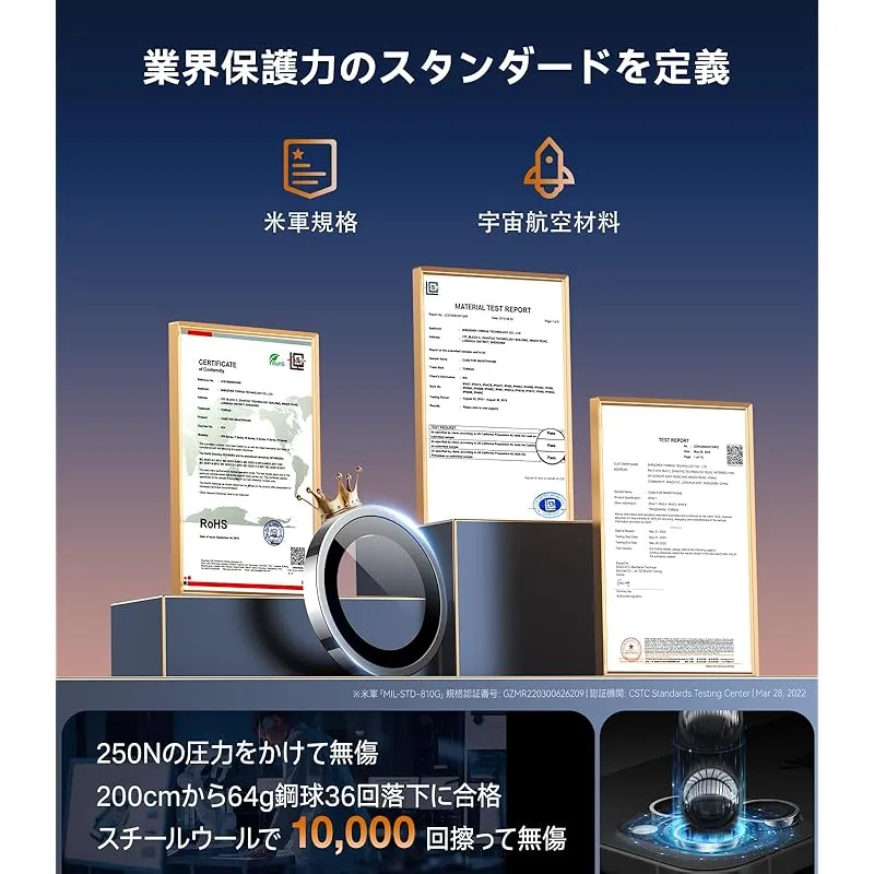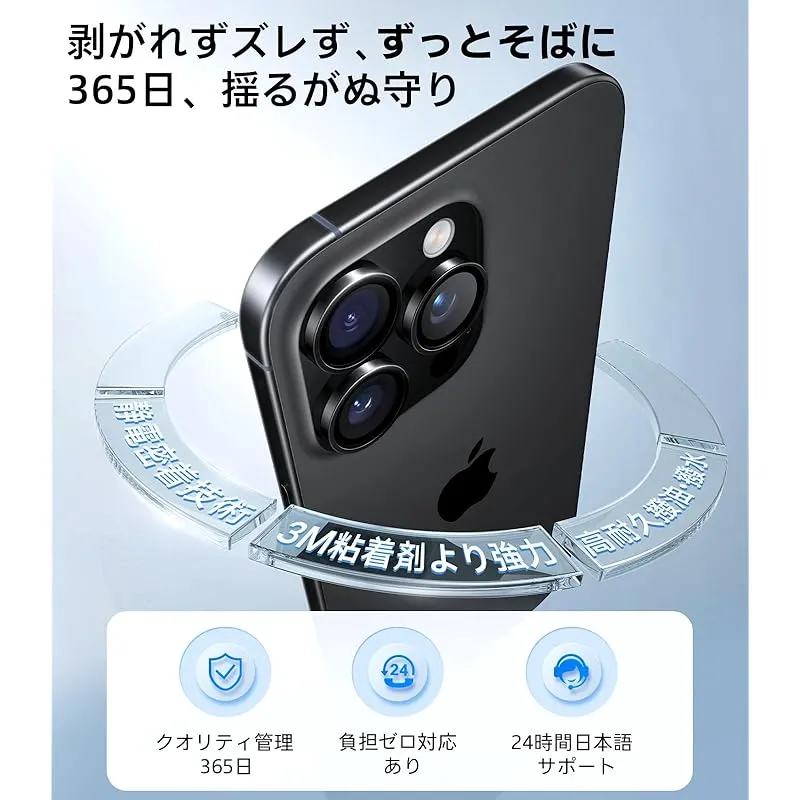 【商品概要】 対応機種・今なら365日付き】For iPhone16pro/16promax カメラ保護 ブラックチタニウム|米軍MIL-STD-810G認証(番号: GZMR220300626209) 365日付き:どうぞ安心してご使用ください。また、製品を開封・ご使用いただいた後に不具合が発生した場合でも、の対象となります。ご購入日から1年以内に、通常使用でヒビ・気泡・曇り等が生じた場合は、迅速に対応いたします(24時間365日体制で受付)。ご不明点やお困りのことがございましたら、メールにてお気軽にご連絡ください。→ 「商品ページ→販売元→質問」で24h日本語で即対応。