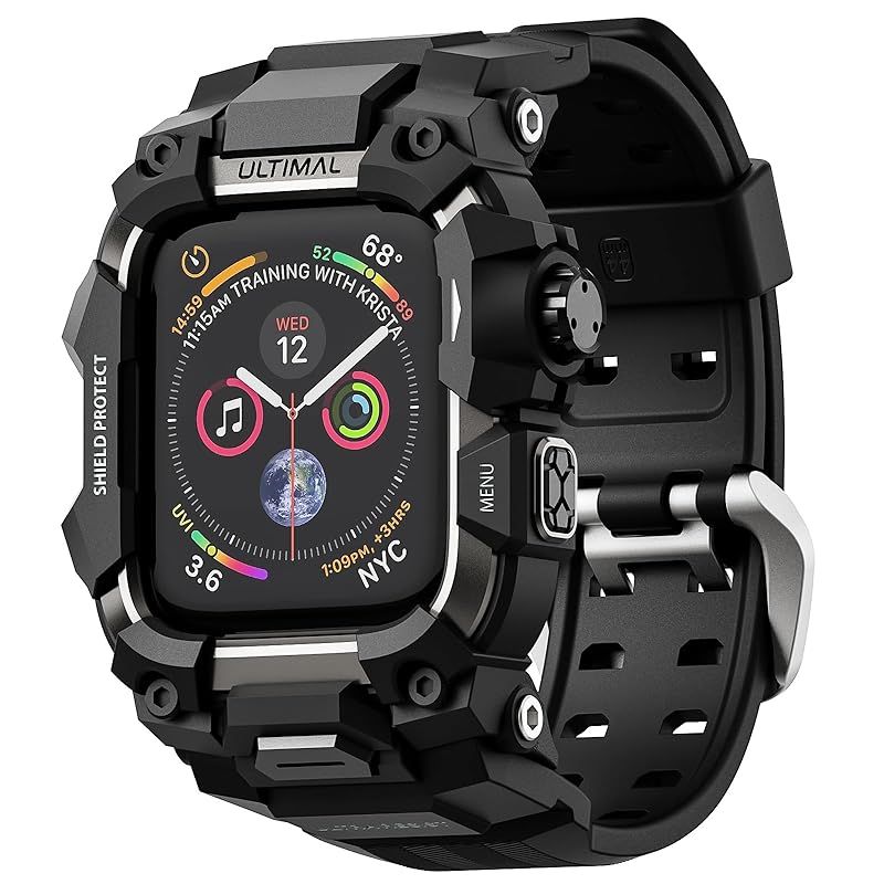 ULTIMAL コンパチブル Apple Watch バンド アップル ウォッチ バンド ケース 一体型 TPU/TPE 耐衝撃 滑り止め 耐久性 落下防止 (ブラック・ブラック, 44mm) 0