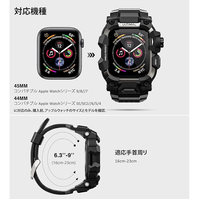 【商品詳細】 ブランド:ULTIMAL 商品種別:家電&カメラ 商品名:ULTIMAL コンパチブル Apple Watch バンド アップル ウォッチ バンド ケース 一体型 TPU/TPE 耐衝撃 滑り止め 耐久性 落下防止 (ブラック・ブラック, 44mm) 製造元:ULTIMAL 商品番号:YTQB 商品内容:44mm 色:ブラック/ブラック
