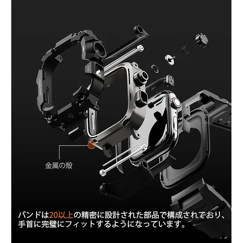 【一体型バンドカバー・対応機種】アップルウォッチシリーズ SE3/SE2/SE/6/5/4 44mm。フレームの一体化強化デザインは、従来の分離式アップルウォッチケースと違い、衝撃を受けても合理的分散し、強きインパクトからapple watch本体「含まれません」を守ります。 ?