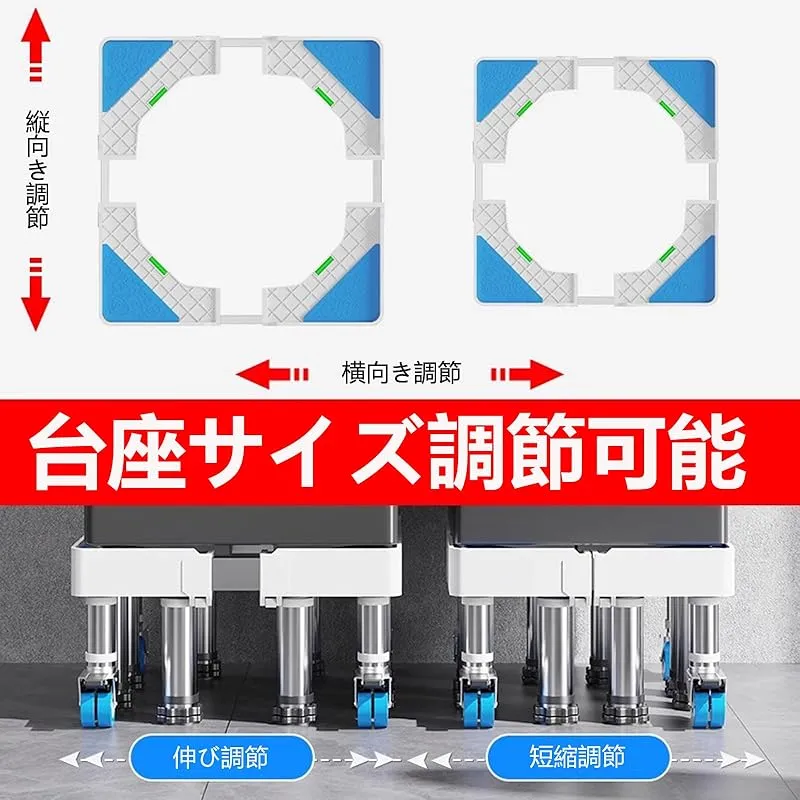【取り付け簡単】これは組み立てが簡単、広さと高低調節可能な置き台です。有効的に洗濯機や冷蔵庫を床面から離れて、直接に接触することが防止できます。ロックのデザイン、一人で組み立てことができる