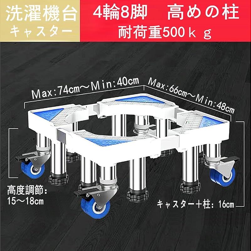 【商品詳細】 ブランド:Sythdio Myth 商品種別:大型家電 商品名:Sythdio Myth 洗濯機 かさ上げ台 4輪8脚 洗濯機置き台 キャスター付き 冷蔵庫置き台 洗濯パン 防水パン 防振パッド付き 360度回転 高さを調節可能 ステンレス製 昇降可能 騒音対策 減音効果 耐荷重400kg (かさ上げ15CM) 製造元:Sythdio Myth 商品番号:4L8J 商品内容:かさ上げ15CM 色:WHITE+BLUE