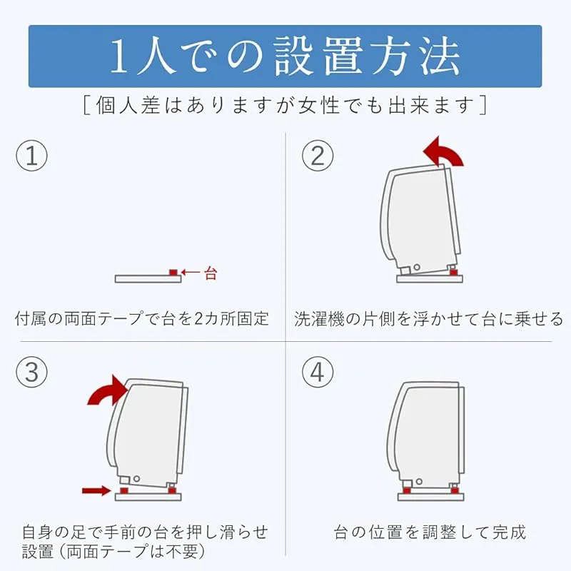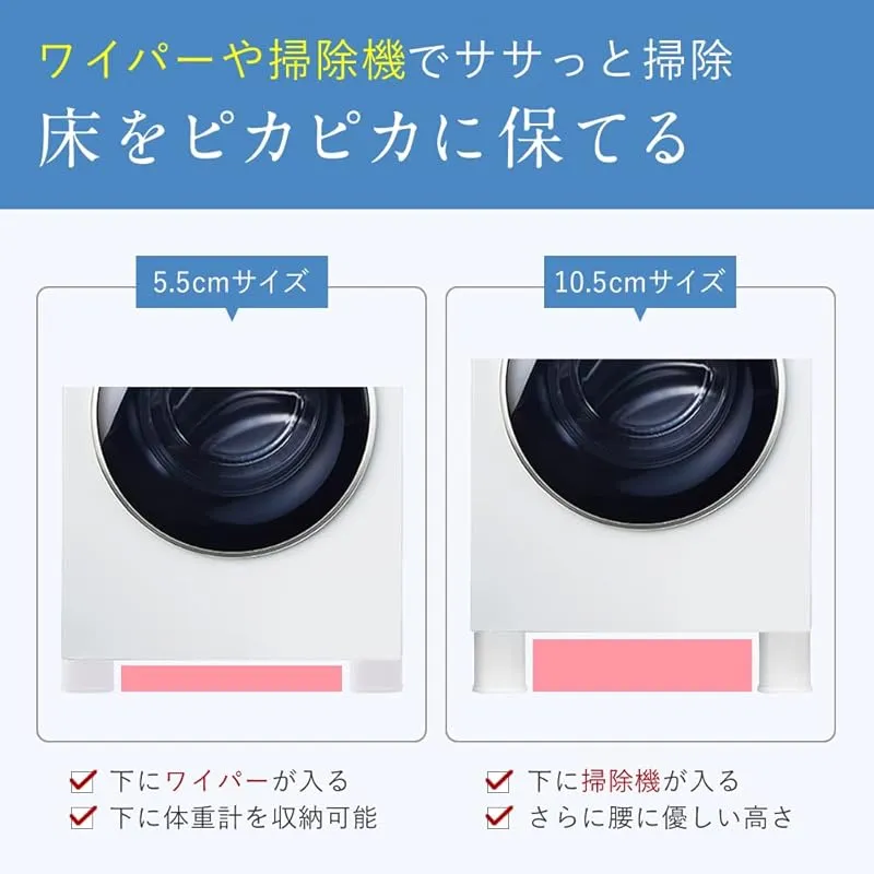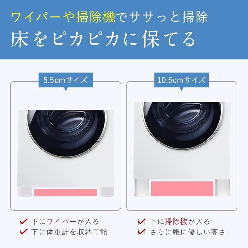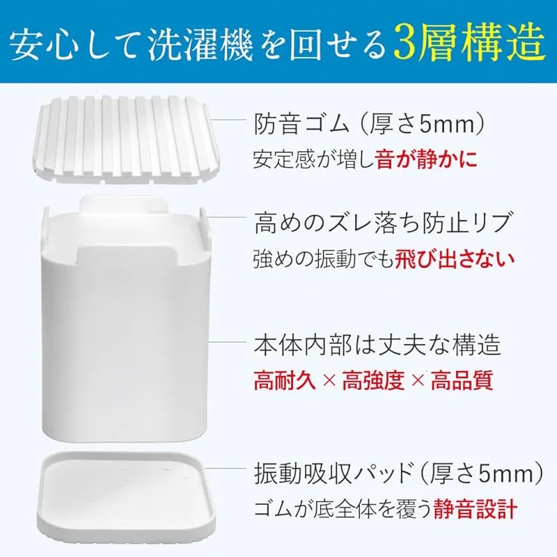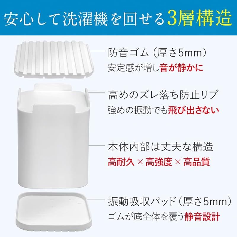 【 選ばれる点がこんなに! 】 ✅安心して洗濯機を回せる3層構造 ✅ゴムで底全体を覆い騒音がピタっと静音に ✅滑り止め両面テープ付き:4枚 ✅床にピタっと吸着・振動でズレない ✅女性でも1人で設置可能 ( ※個人差合がありますのでご注意 ) ✅床の隙間をワイパーでササっと掃除できる ✅下に体重計を収納できるちょうどいい高さ ✅洗濯物を取り出しやすく腰が楽に ✅自然な白さで見た目スッキリ . ✅