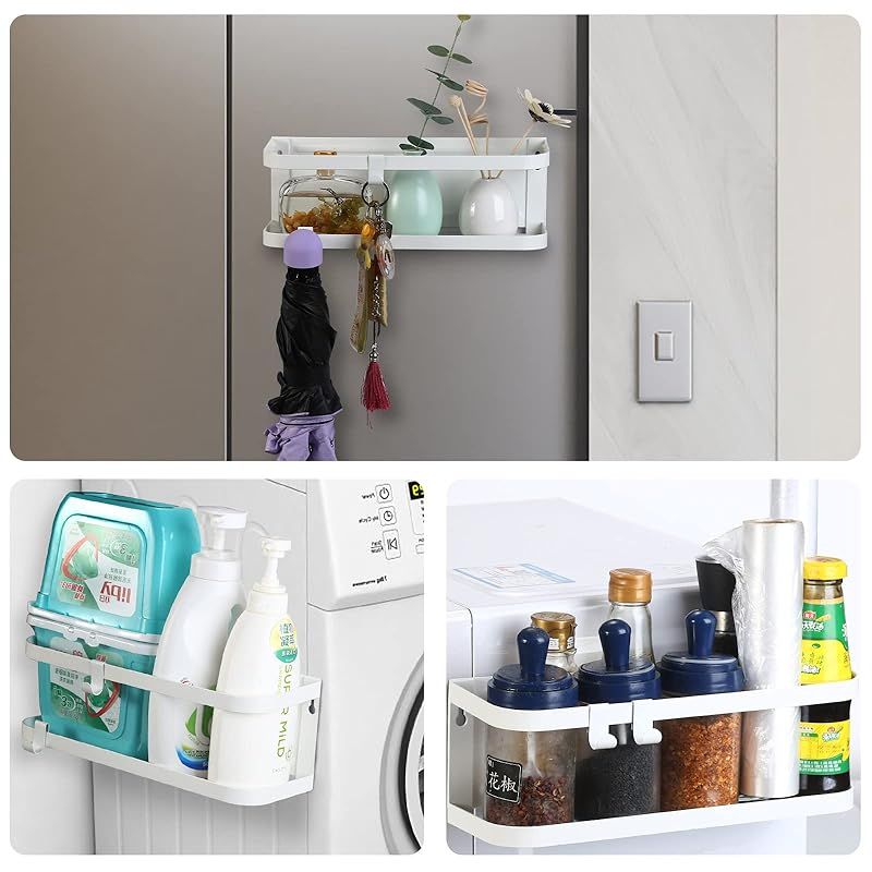Goowin 洗濯機 ラック マグネット 耐荷重7kg 洗濯機横 隙間 冷蔵庫サイドラック W30*10*H10.5cm 収納棚 フック付き ホワイト 2点セット 1
