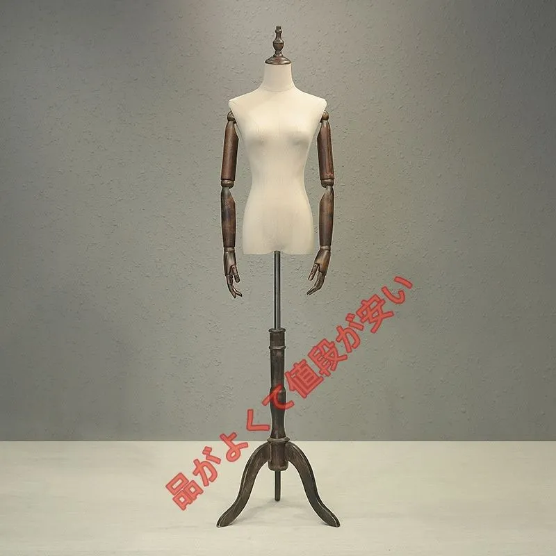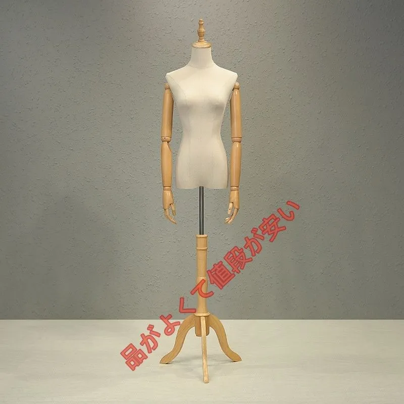 マネキンスタンド 和風トルソー 簡単組み立て 木製三脚土台付きで安定 木製手付き女性用マネキン 和風ボディ 着物用に最適2タイプから選択