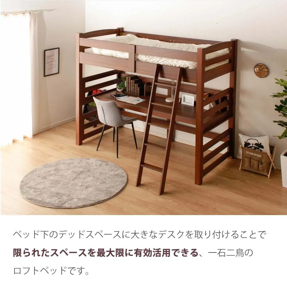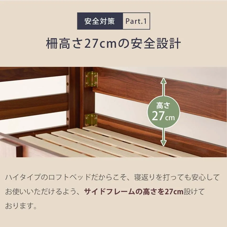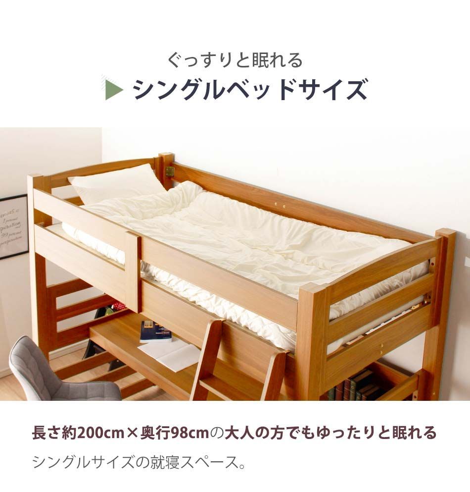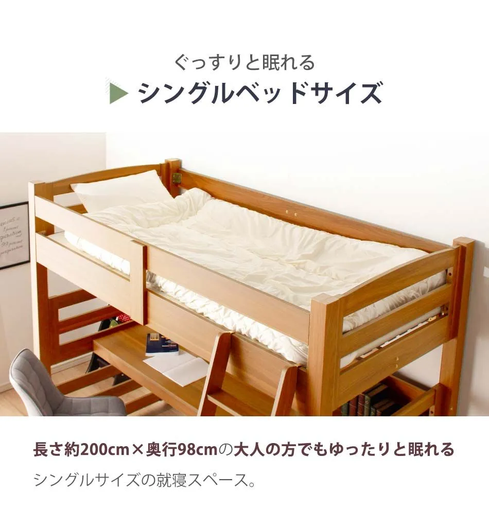 ロフトベッド 大人 階段 机付き 【送料無料】 子供 キッズ おしゃれ ロフトベット デスク付き 本棚付き ハイタイプ ツインデスク シングルサイズ シングルベッド シングルベット 大人 収納 デスク 机