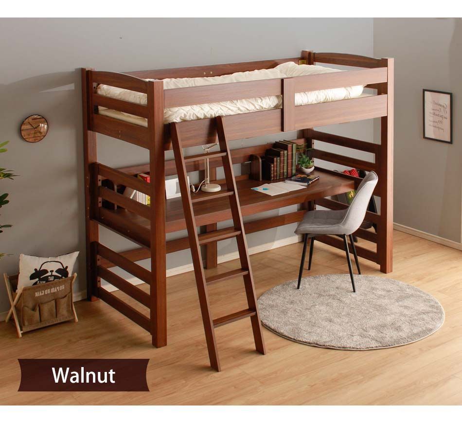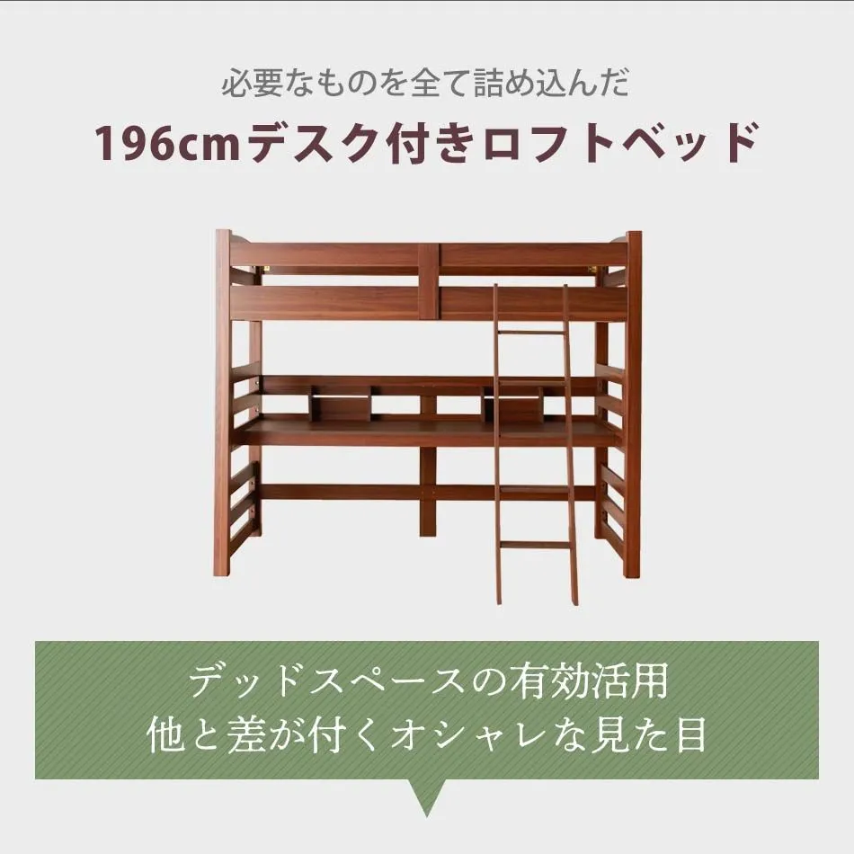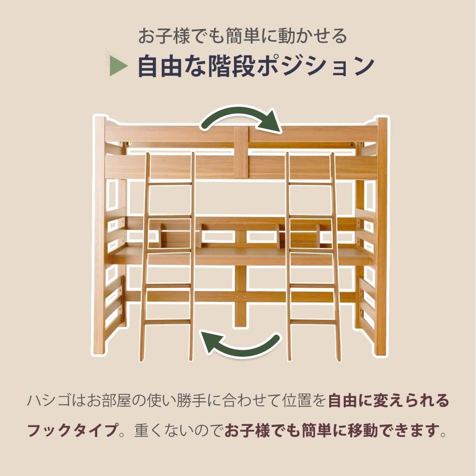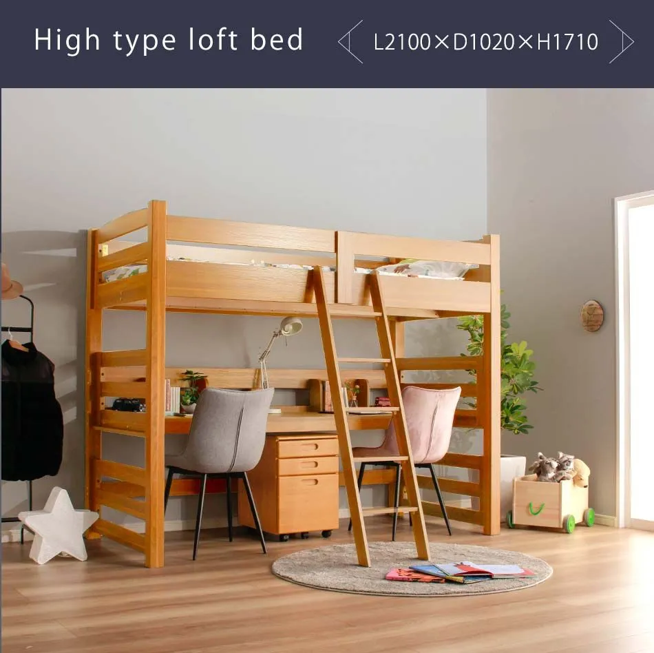 ロフトベッド 大人 階段 机付き 【送料無料】 子供 キッズ おしゃれ ロフトベット デスク付き 本棚付き ハイタイプ ツインデスク シングルサイズ シングルベッド シングルベット 大人 収納 デスク 机