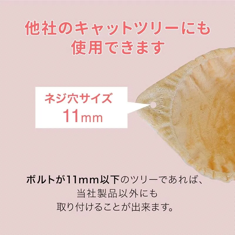 【商品概要】 サイズ (約)幅45cm×奥行37cm 耐荷重 (約)6kg ※キャットタワーに固定した場合の耐荷重となります 材質 生地(ポリエステル) こちらの商品はキャットタワーをお持ちの方用のパーツ販売用ページとなります。 キャットタワー本体・専用ボルトは別売りとなりますのでご注意下さい。 ※商品は、モニターによって色合いが異なって見える場合があります。 ※仕様・デザインは改良のため予告なく変更することがあります。
