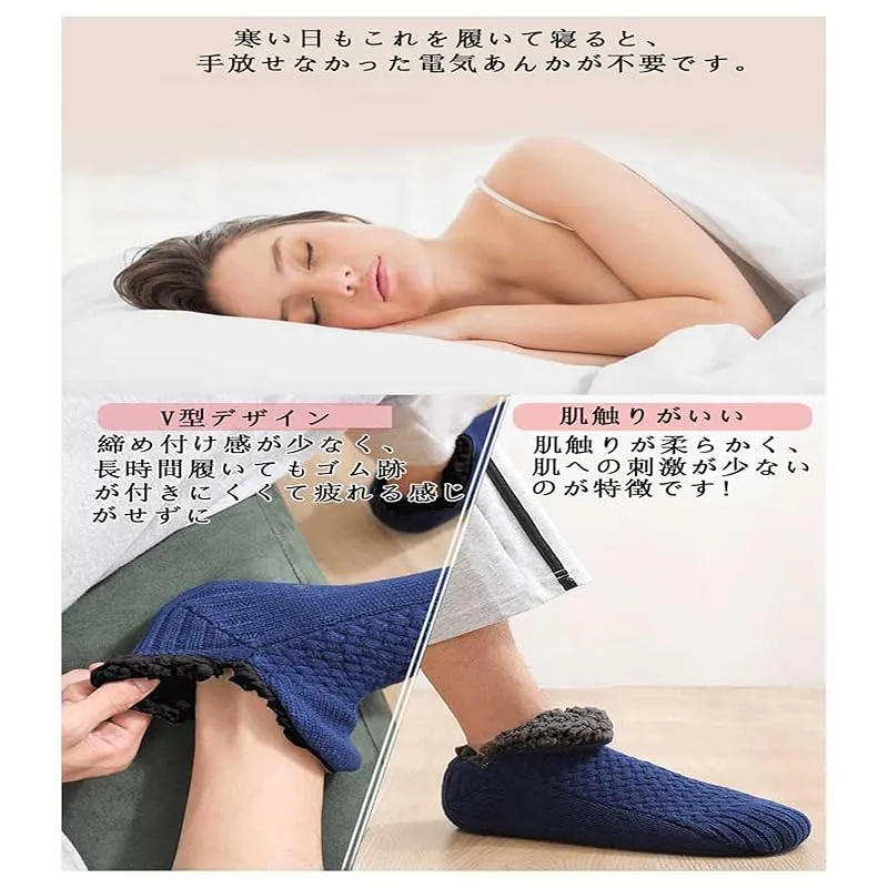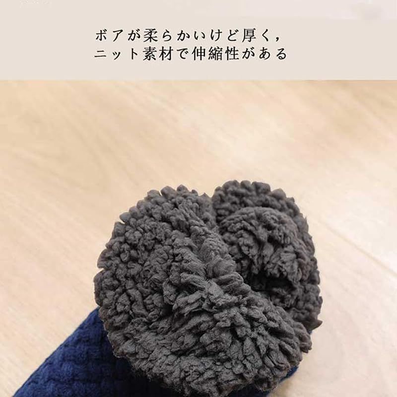 【保温性の高いソックス】:足先までふわモコの裏ボア付き、ふわふわの極上毛布に包まれたみたい信じられないほど暖かい、しっかり蓄え保温します。 足が冷えている状態を放置してしまうと、血の巡りが悪くなり、全身の冷えを引き起こします。「冷えは万病の元」といわれているように、さまざまな体の不調につながりますので、ルームソックスを履くことで足元を暖かくしておけますよ。