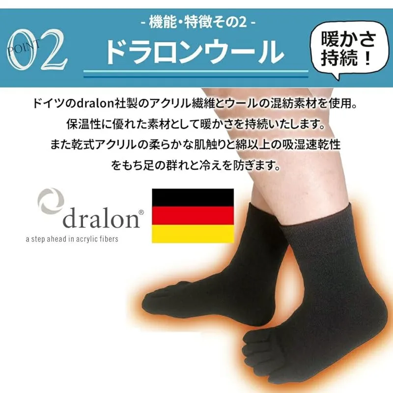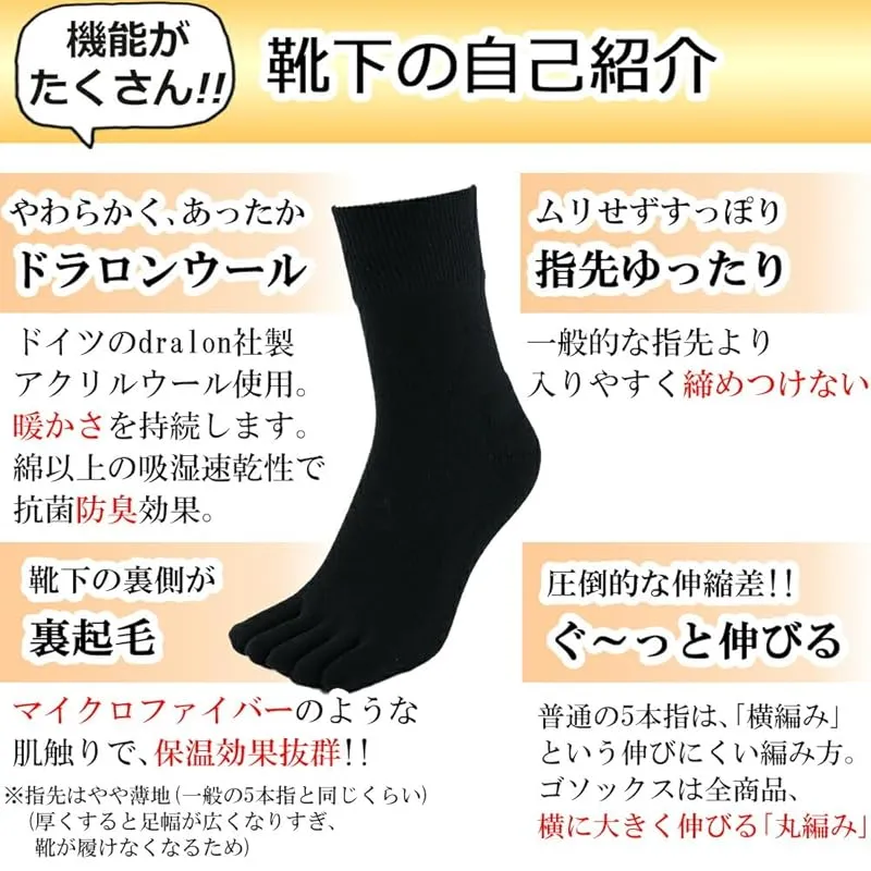 【新品】 [アスカ] 5本指ソックス あったか裏起毛 ウール混 防寒 ドイツ製ドラロンウール メンズ レディース 23-25cm 3足 商品内容:23.0-25.0 cm 色:ブラック 3足組