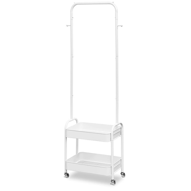 【在庫セール】ottostyle.jp ハンガーラックワゴン キャスター付 マルチ バスケット トローリーハンガー 洋服 バッグ コート 収納 小物 ランドセルラック 艶消し メッシュ [幅45.5cmcm/ホワイト] 1