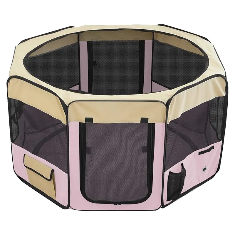 【在庫セール】ottostyle.jp 折りたたみ八角形ペットサークル Lサイズ 【ピンク】 直径114cm×高さ62cm メッシュ屋根付き 屋内 屋外 アウトドア 1
