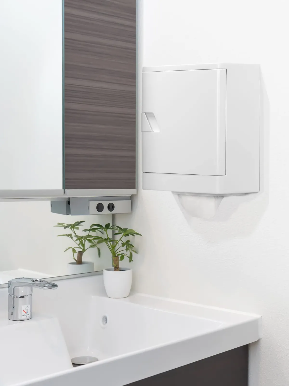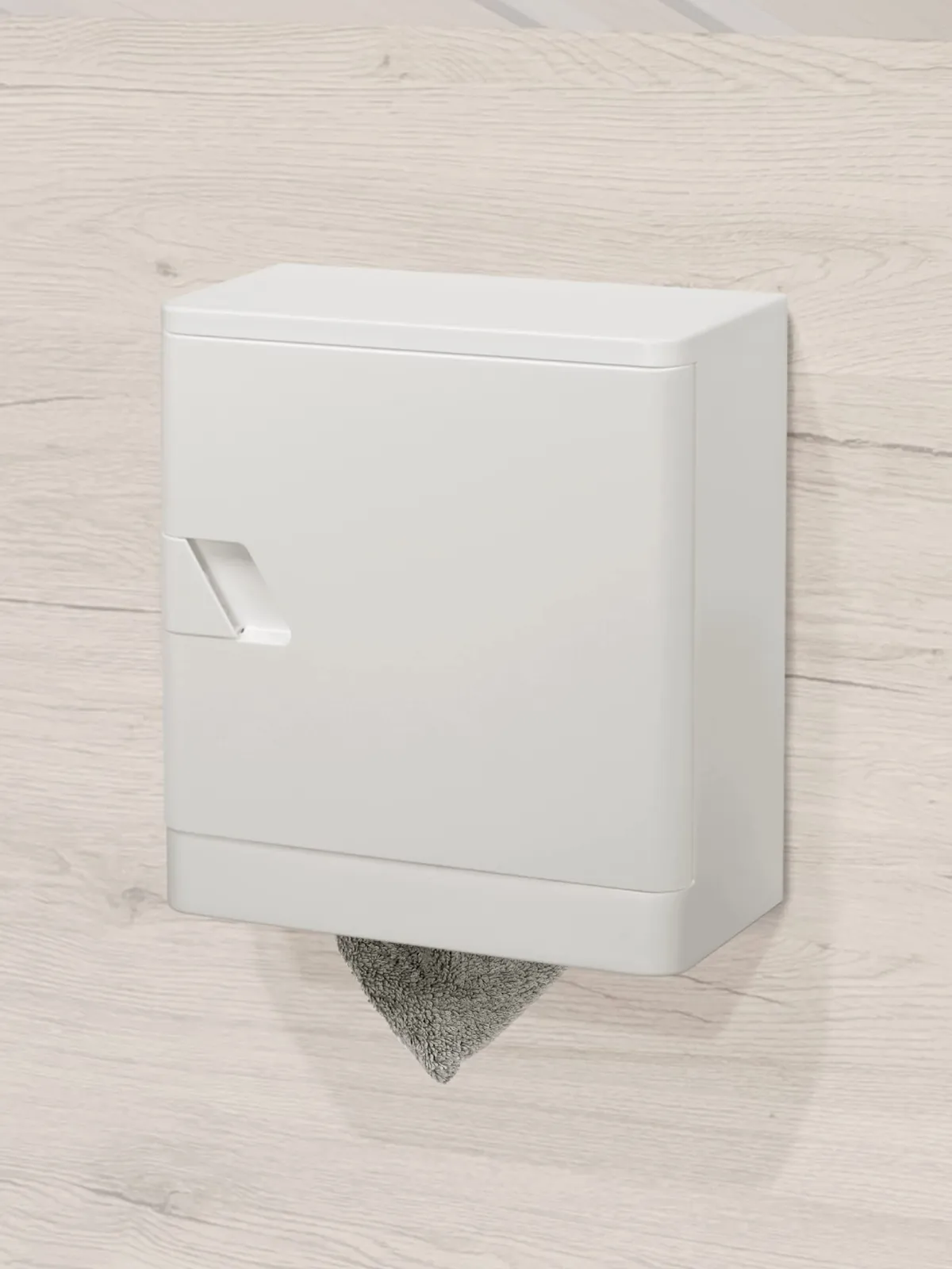 扉はマグネット付きのため、入れたタオルが落ちるのを防ぎます。