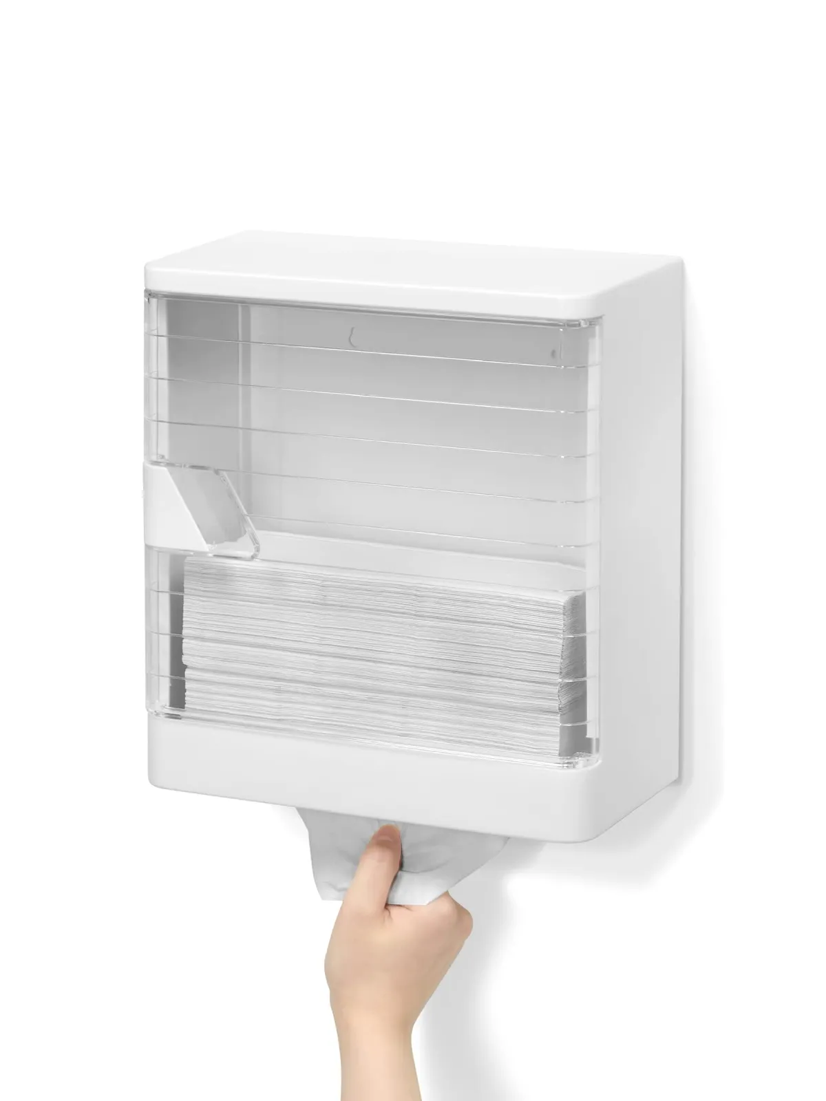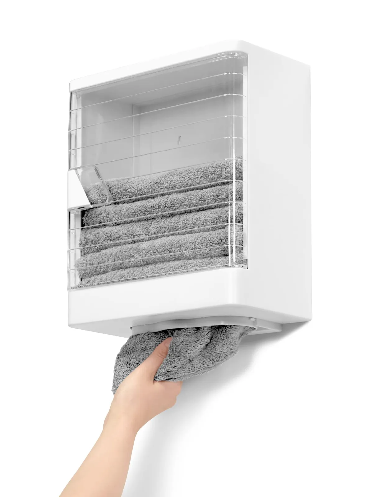 ペーパータオル:約600枚(中判、小判サイズの2つ折りタイプに対応)収納可能