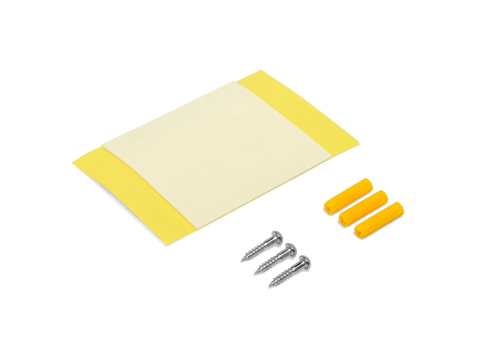 両面テープ、または木ねじでの設置となります(耐荷重2kg)。設置場所をよくお確かめの上ご使用ください。
