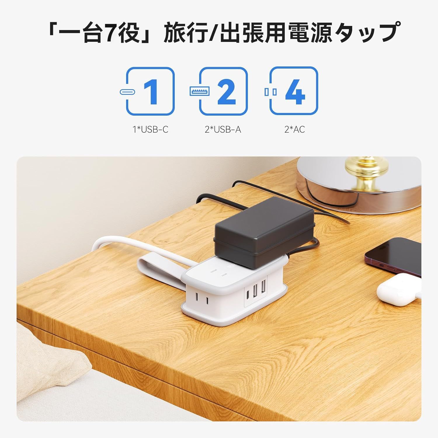 新品 延長コード 1m タイプC NTONPOWER 電源タップ USB付き コンセントタップ 軽量小型 テーブルタップ コード短い 巻き取り 蛸足コンセント 出張/旅行/入院/自宅 【4AC+2USB-A+1USB-C,ホワイト】