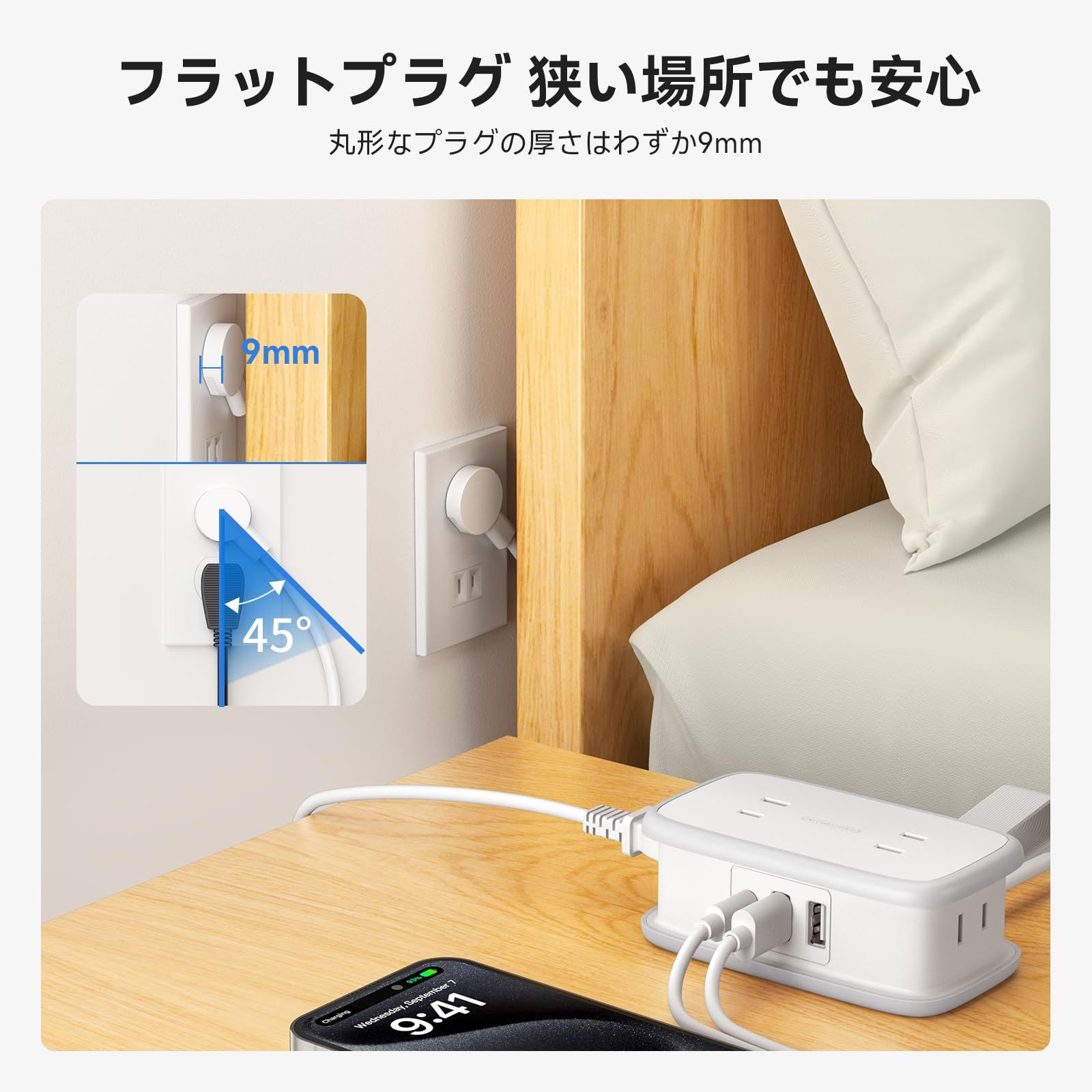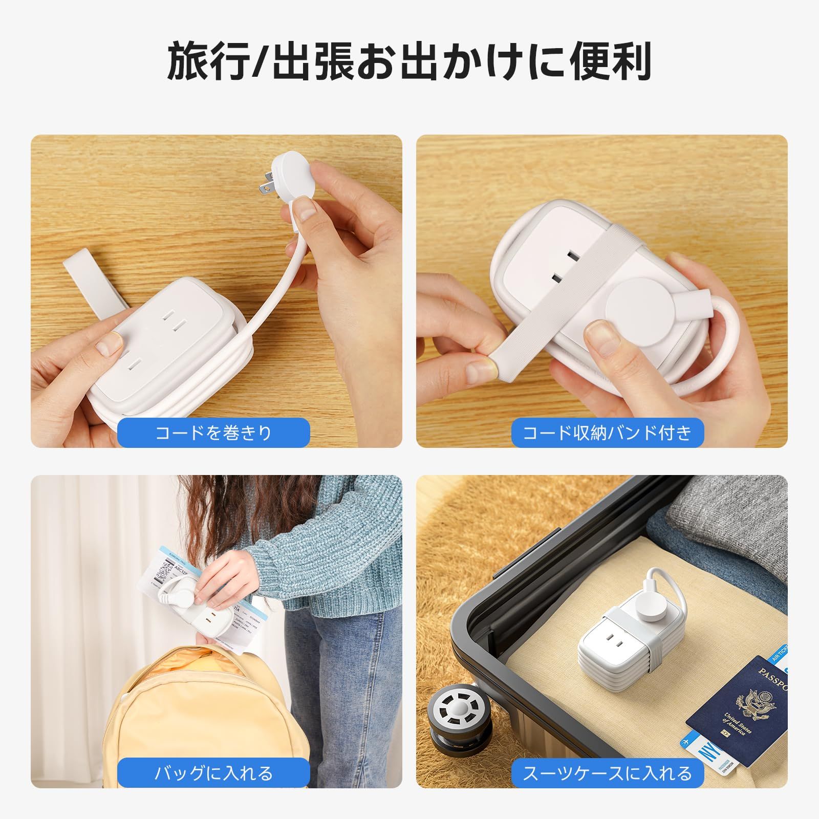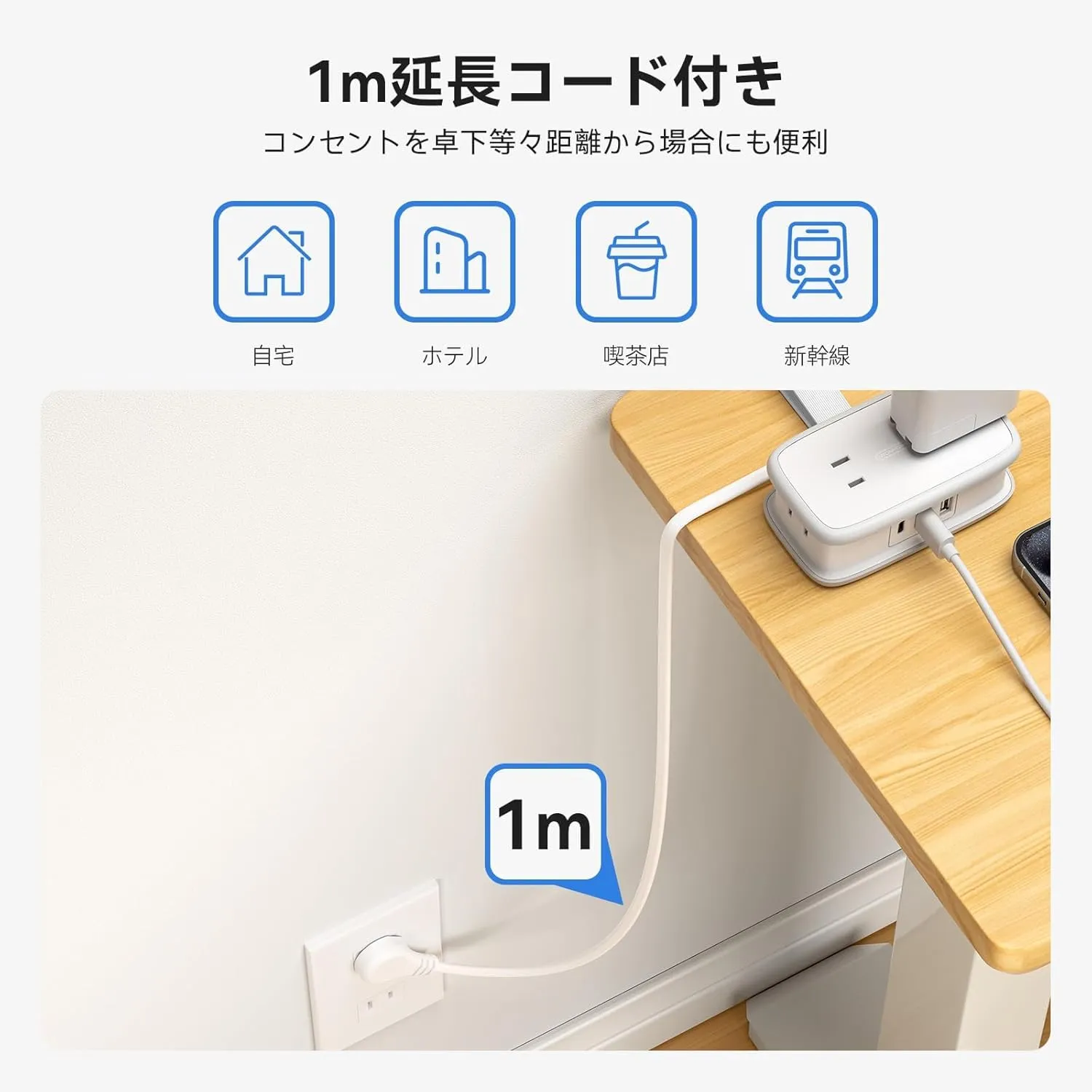延長コード 1m タイプC NTONPOWER 電源タップ USB付き コンセントタップ 軽量小型 テーブルタップ コード短い 巻き取り 蛸足コンセント 出張/旅行/入院/自宅