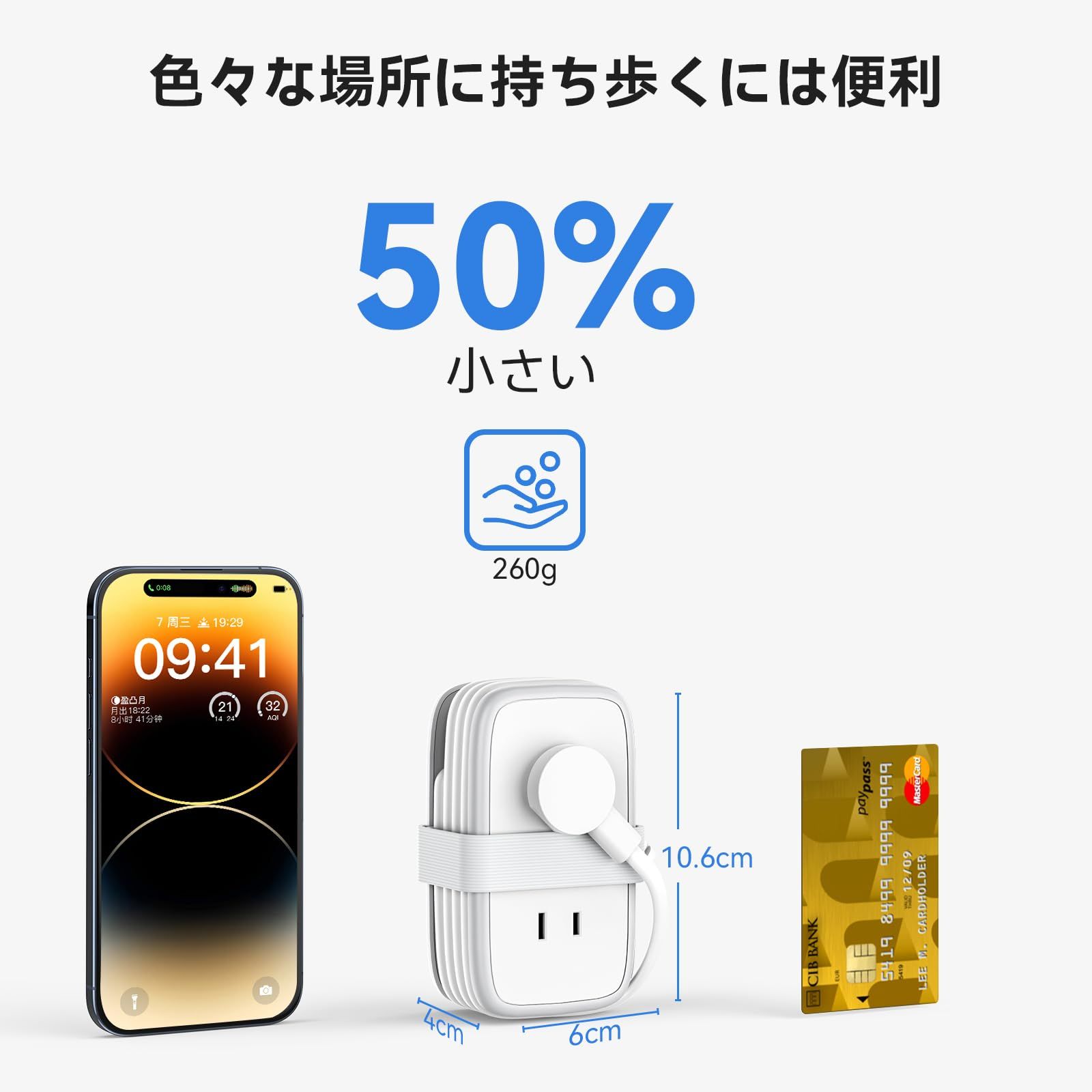 【4AC+2USB-A+1USB-C,ホワイト】 サイズ: 4AC+15.5w 一台7役の旅行 延長コード:NTONPOWERこの出張 延長コードは4つのACポート、2つのUSB-Aと1つのUSB-Cポートがあります。USBポートにはスマートICチップによる自動認識機能が搭載され、デバイスに最適な充電電流を供給します。スマートフォン、タブレット、ノートパソコンの急速充電が可能です。 コンパクト&携帯に便利:NTONPOWERこのusbポート コンセントはサイズが12.00×6.20×4.30 cm、重さが240g、一般的な延長コードよりも小さく軽量で、持ち運びにも便利です。そのため、この電源コードはいつでもどこでもポケットに入れることができるため、「ポケット電源」と呼ばれています。 延長コード 巻き取り式:このえんちようこーどには電源コードを束ねるゴムバンドが付属しており、外出先でバッグやスーツケースの中が散らかるのを防ぎます。ホテルやカプセルホテル、新幹線などの持ち運びに便利で、簡単かつ急速に充電できます。 省スペースの45°プラグ:プラグの厚さはわずか9mmで、家具、キャビネット、ベッド、ソファの後ろの壁面コンセントに簡単に差し込み、不便な充電の問題を解決します。 また、45度の角度を持ったプラグ設計により、直下の他のソケットをうまく回避し、プラグ間の干渉を避けることができます。 PSE認証済&18ヶ月:弊社の製品は日本国内の厳しい安全基準の電気用品安全法に基づくPSE認証を取得しており、安全基準をクリアしています。ご購入後18ヶ月の製品付きで、安心してご使用いただけます。何か問題がございましたら、お気軽に弊社までご連絡ください! ブランド NTONPOWER 色 ホワイト 電源コンセントの総数 7 電圧 125 特徴 USB-Cポート フラットプラグ 伸縮自在コード 持ち運びやすい 最後までご確認頂き誠にありがとうございました。 上記をご確認頂き、ご購入いただけましたら幸いです。 何かご不明な点がございましたらお気軽にメッセージからお問い合わせ下さい。