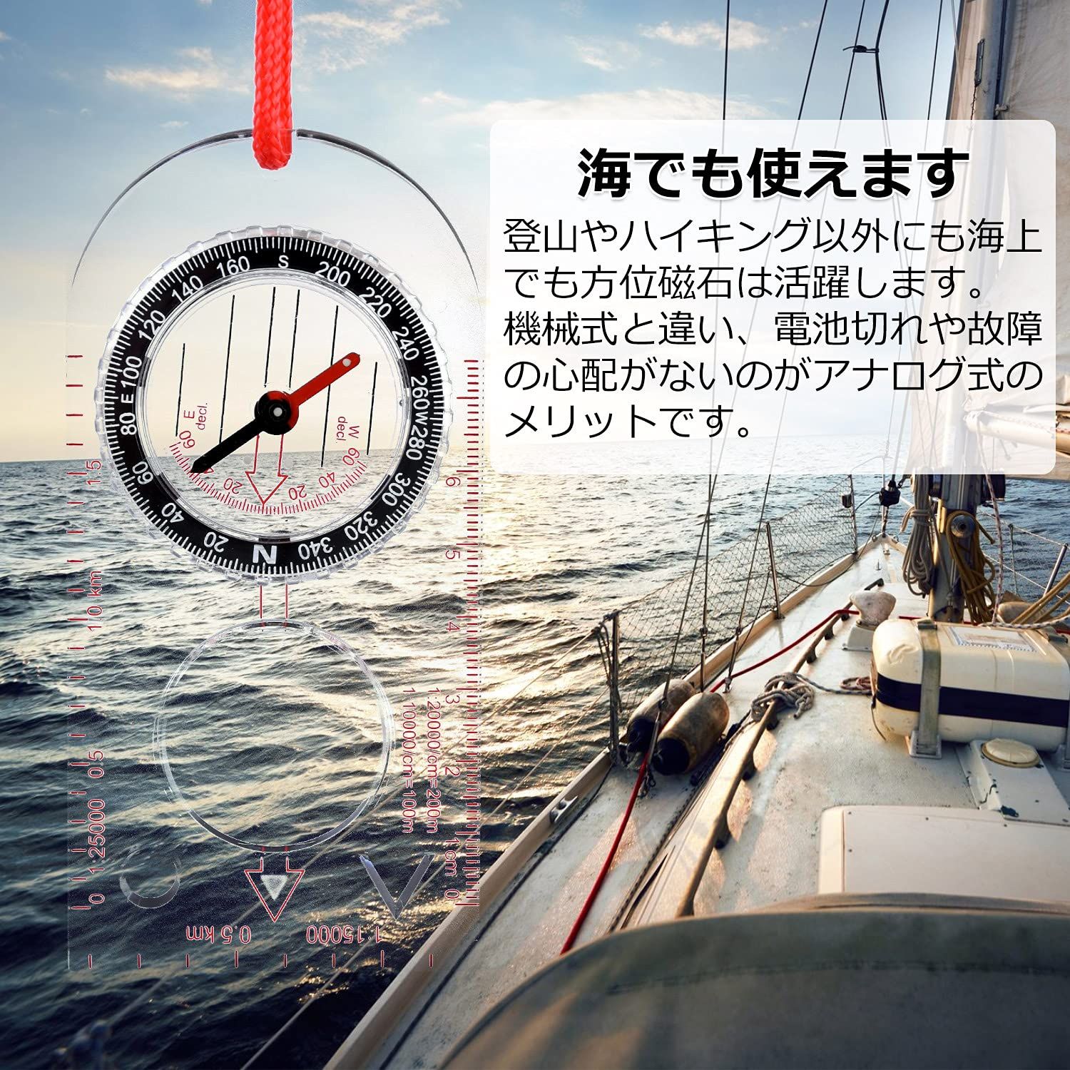 【電池不要でどこでも使える】 アナログ式のため、電池切れの心配がなく、どんな環境でも確実に方角を確認できます。登山やハイキング、海上でも大活躍します。