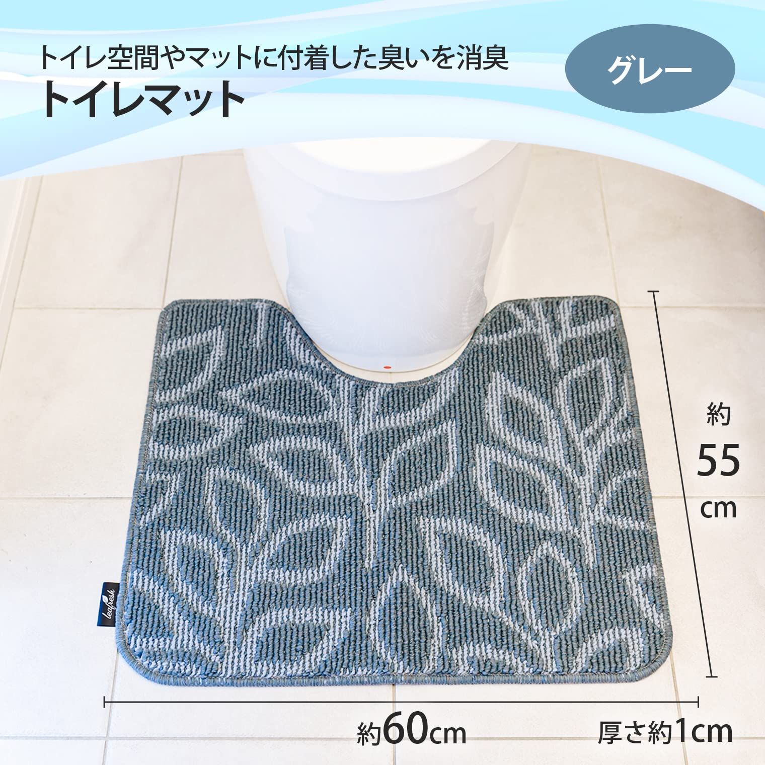 山崎産業(Yamazaki Sangyo) トイレ トイレマット 足元マット 消臭マット 消臭 滑り止め 洗濯可 リーフレッシュ グレー レギュラー 幅60×奥行55×高さ1cm 196135 [グレー] [55 x 60 cm (長方形)]