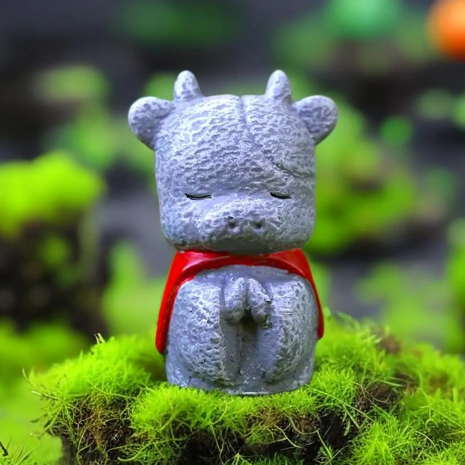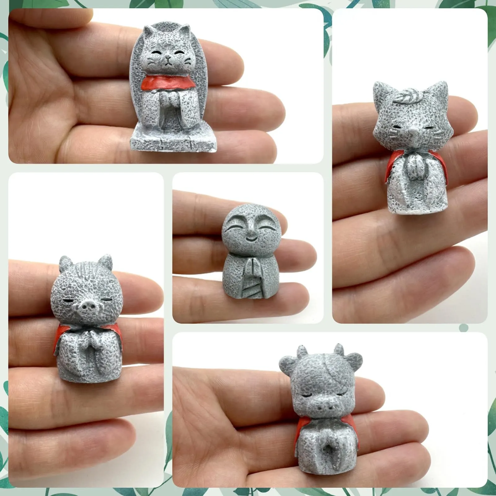 ReemeHi 動物お地蔵さんセット癒し可愛い小型置物祈りお地蔵様おじぞうさま守り神みかげ石 幸せ願い縁の良いおきもお かわいい御影石 神仏像 (牛)