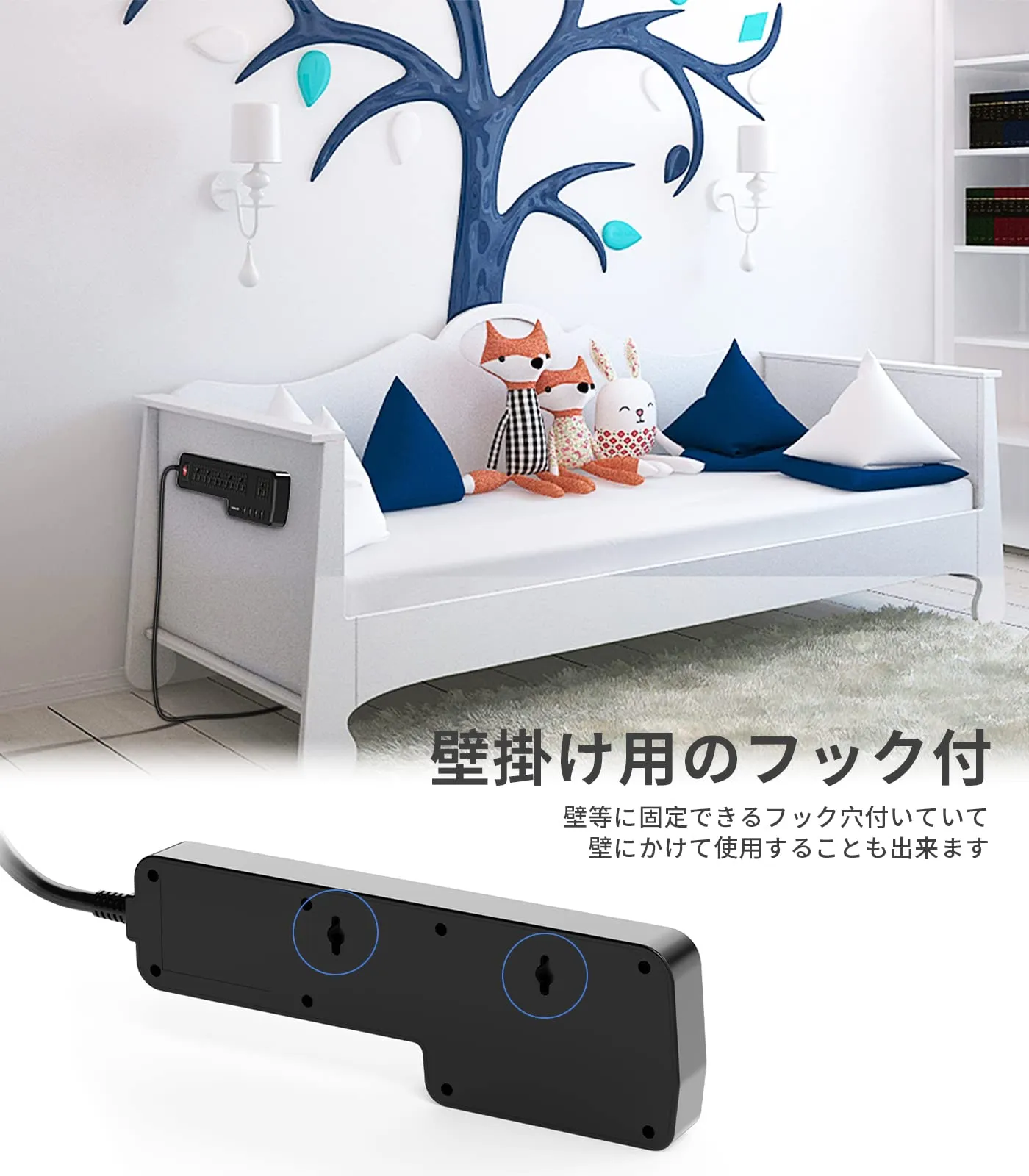 【壁掛け用フック付】:背面に壁掛け用のフック穴があるので、 壁にかけてご使用できます。 ブランド Micshion 色 ブラック 電源コンセントの総数 10 商品の寸法 26長さ x 8.5幅 cm 商品の推奨用途 Usb