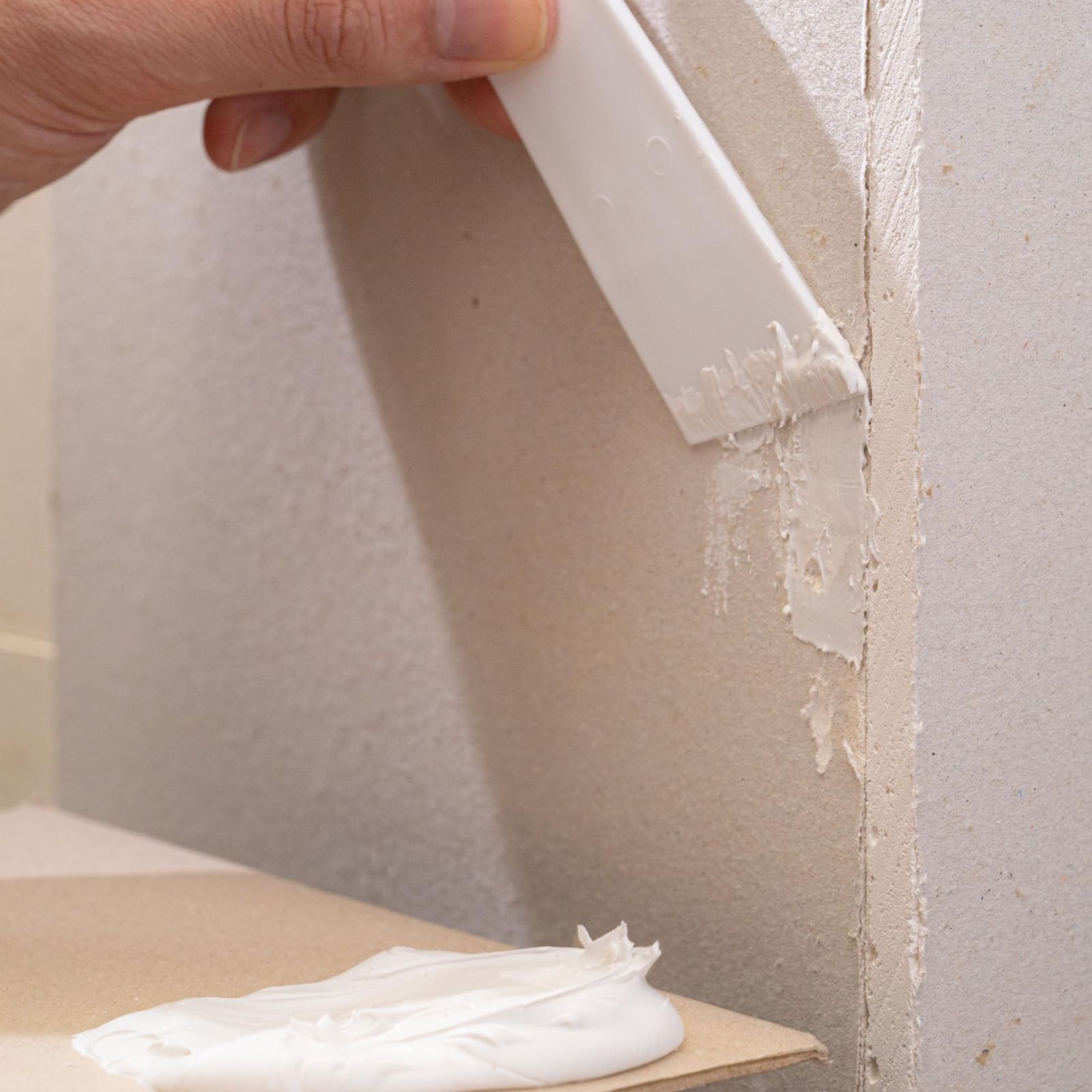 きめが細かく、伸びがよいので壁穴や傷の補修に適した水性タイプのパテ