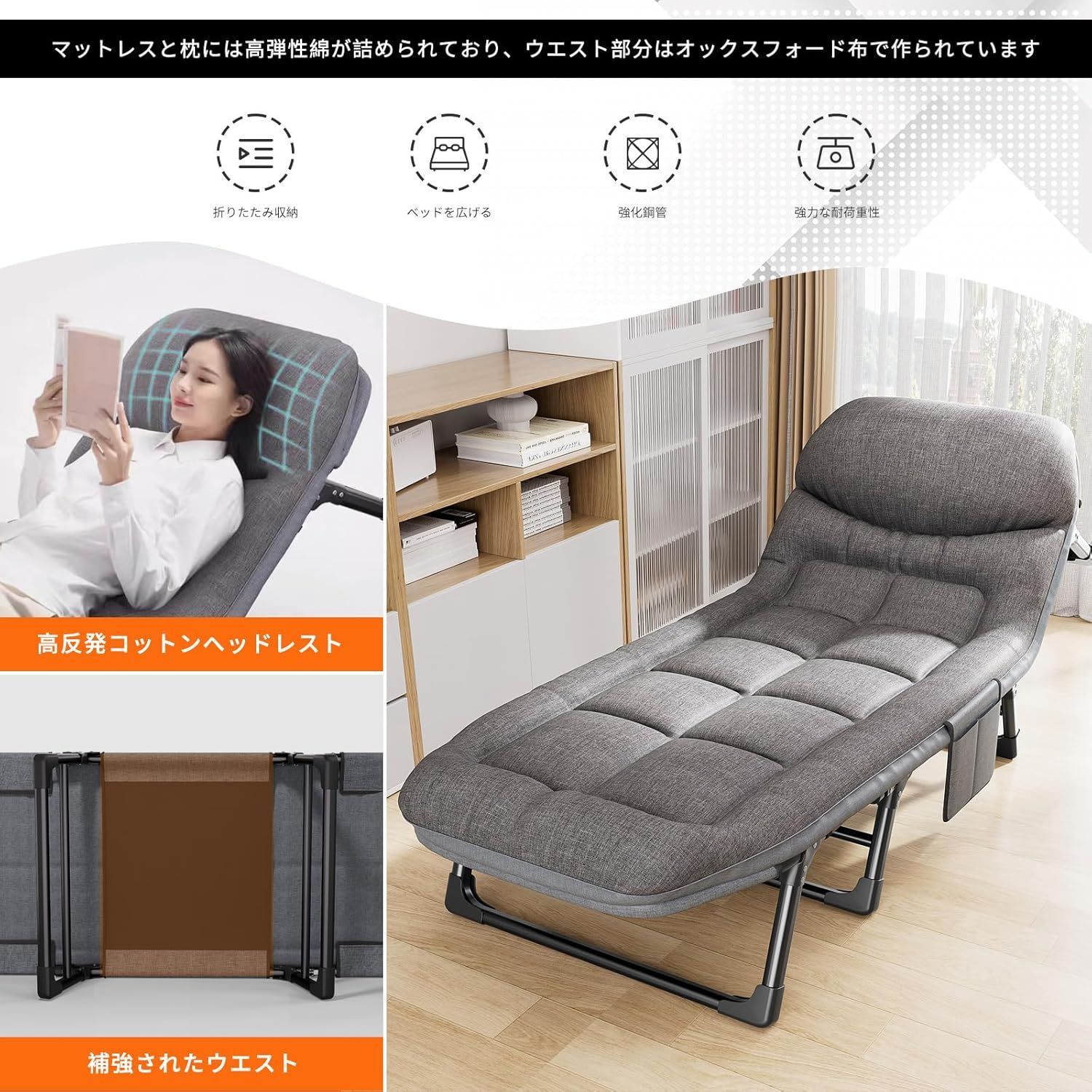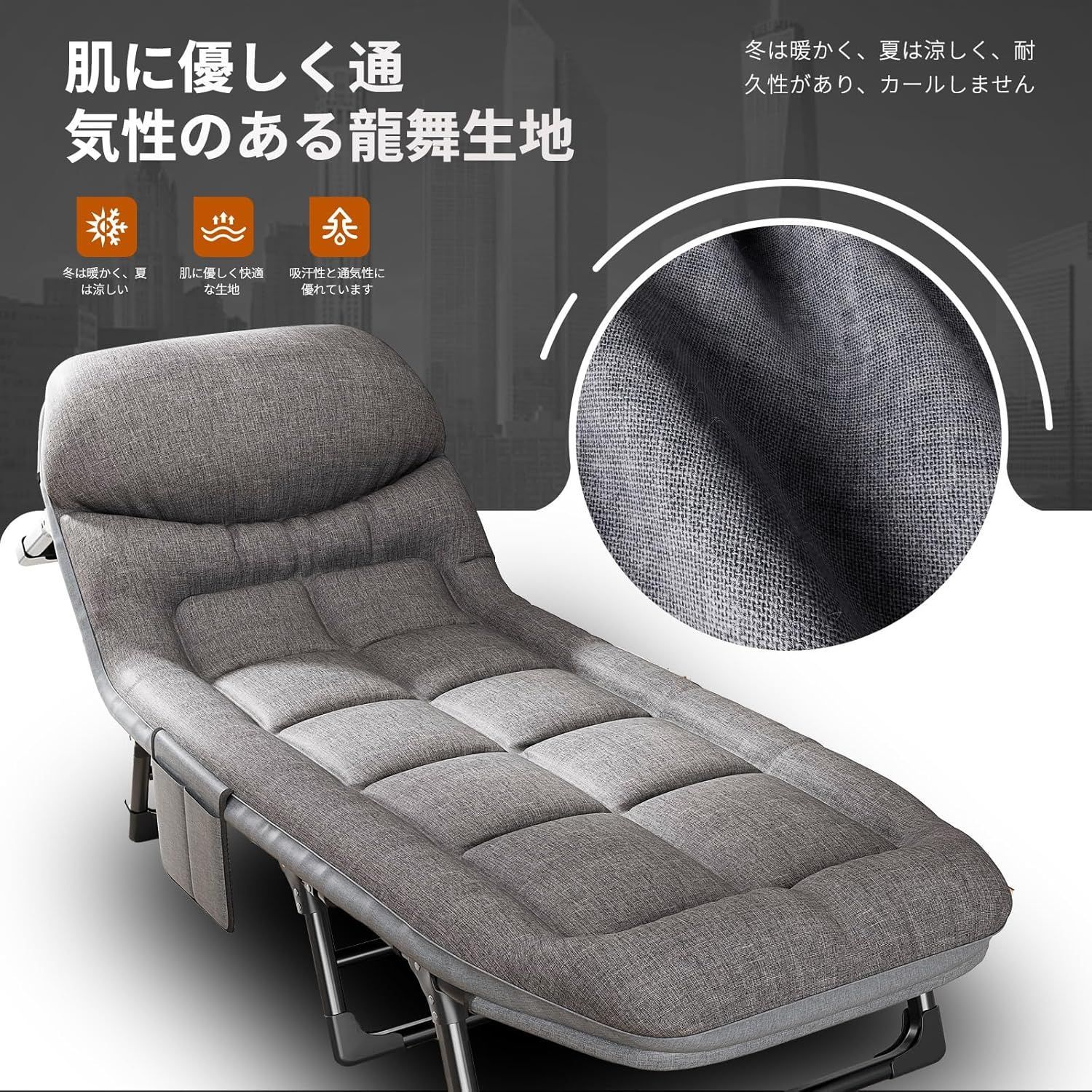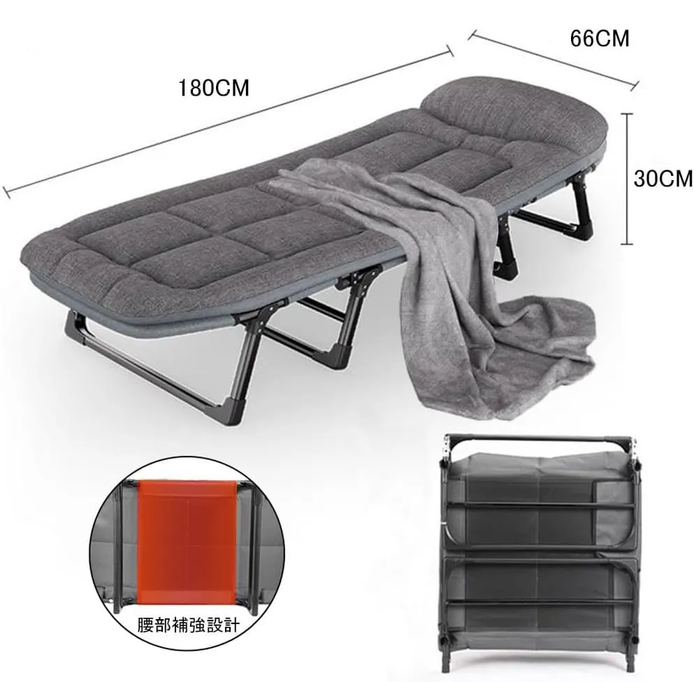 シングル折りたたみベッド 軽量簡易ベッド コンパクト収納 室内外兼用 組み立て不要 6段階リクライニング 静音設計 耐荷重100kg 昼寝 アウトドアに活用可能(180×66cmブランケット付き)