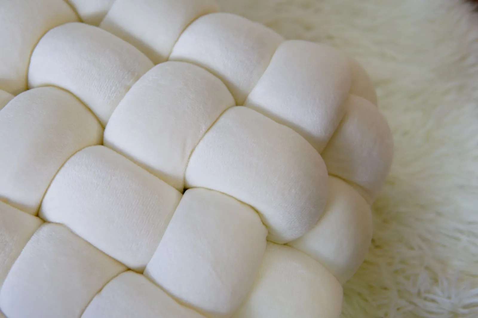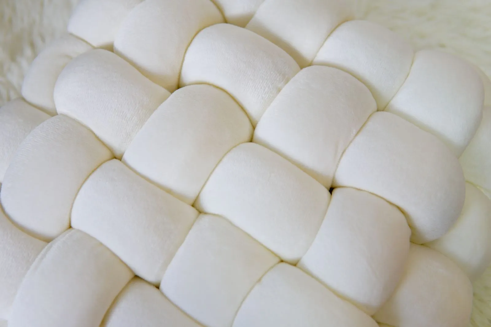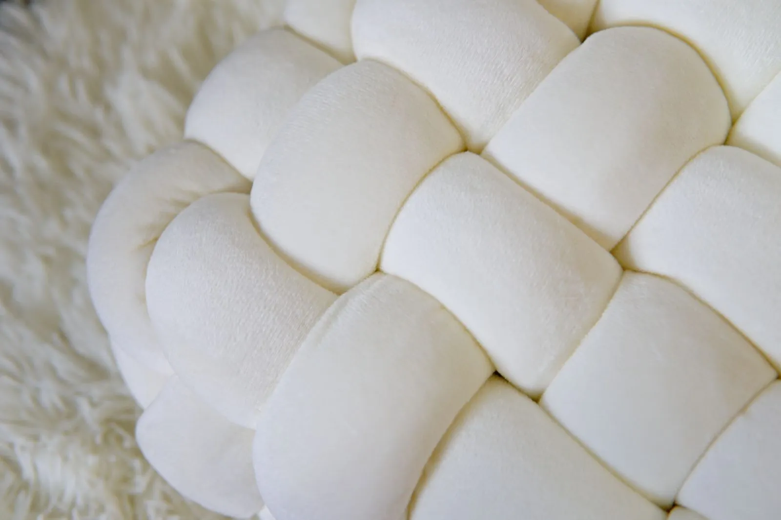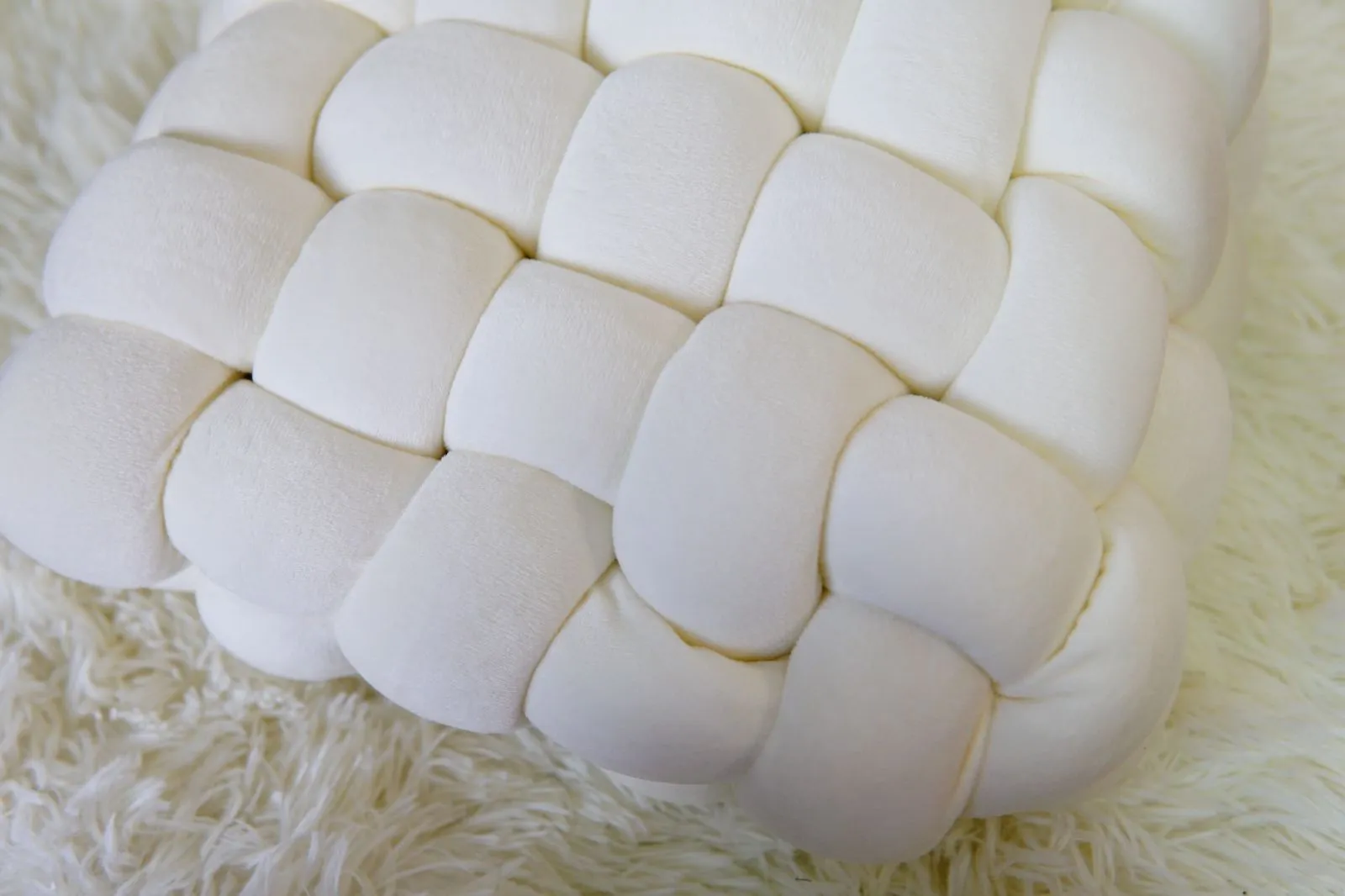 【♡大人気♡】 ノットクッション ホワイト ベロア調 編み込み 北欧 韓国インテリア 33cm