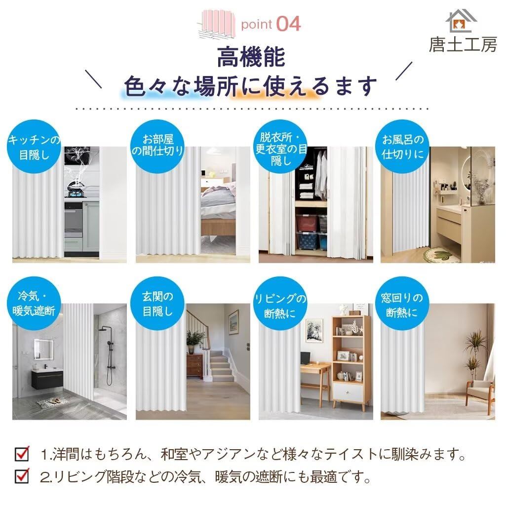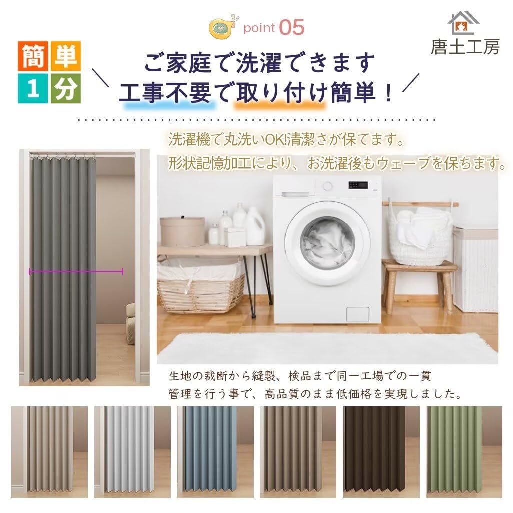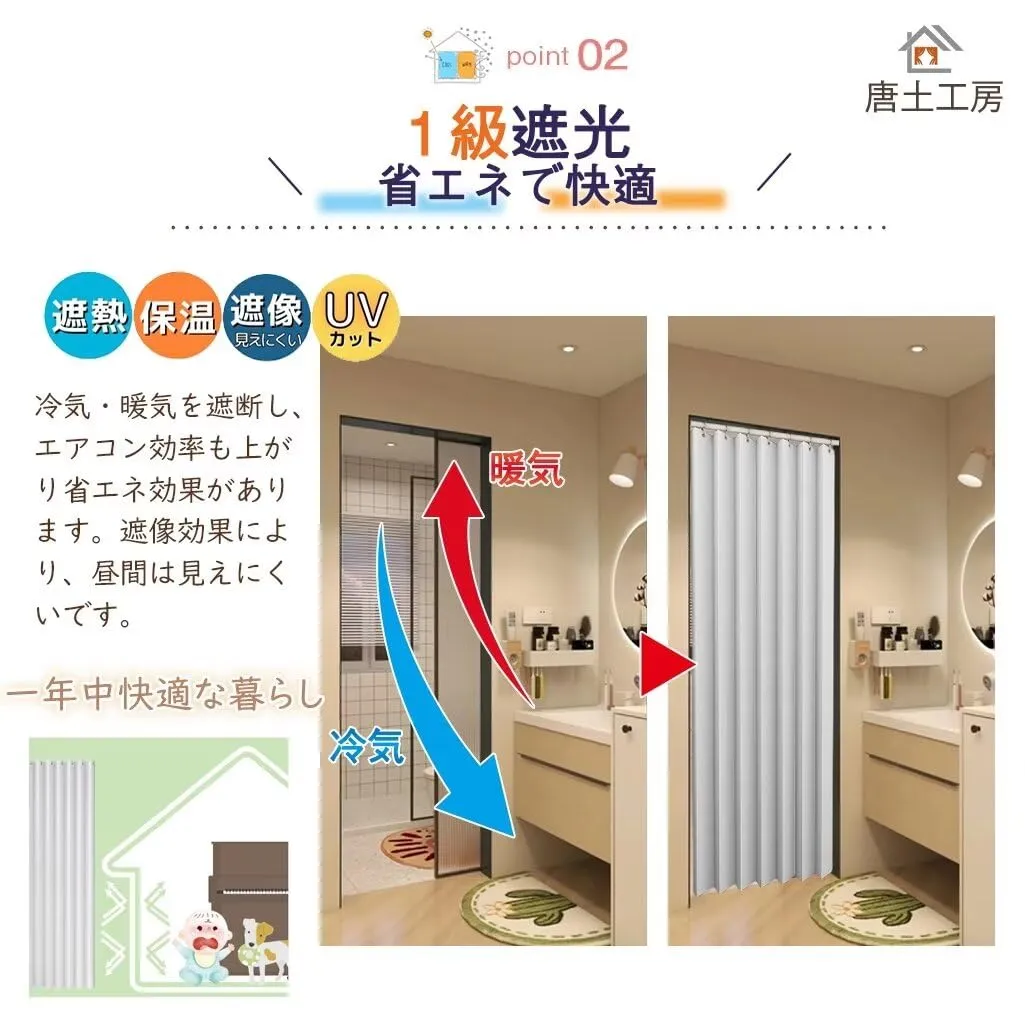 唐土工房 間仕切りカーテン 断熱 のれん 遮光 一級遮光 1級 暖簾 おしゃれ ロング 180cm丈 100cm幅 1枚 アコーディオンカーテン 間仕切り ドアカーテン 突っ張り棒カーテン 防寒保温 防音 無地 厚手 省エネ 冷気遮断 目隠し 形状記憶加工 の