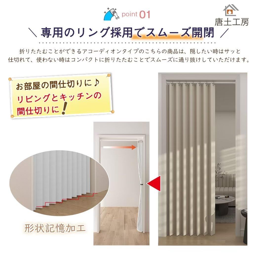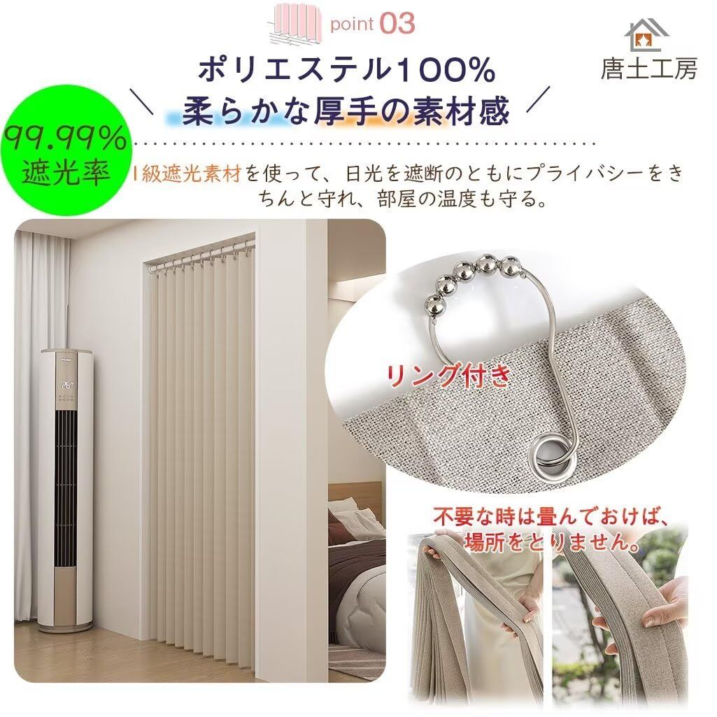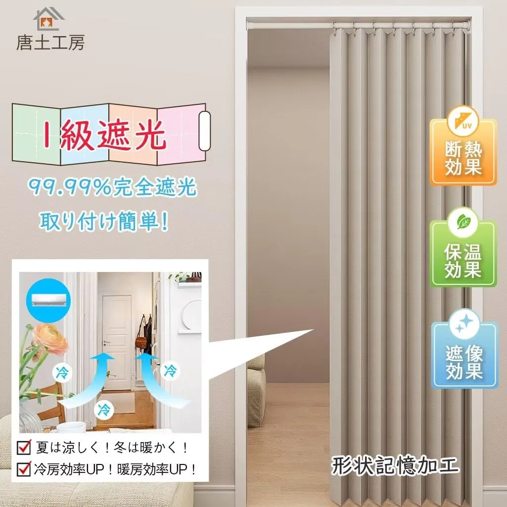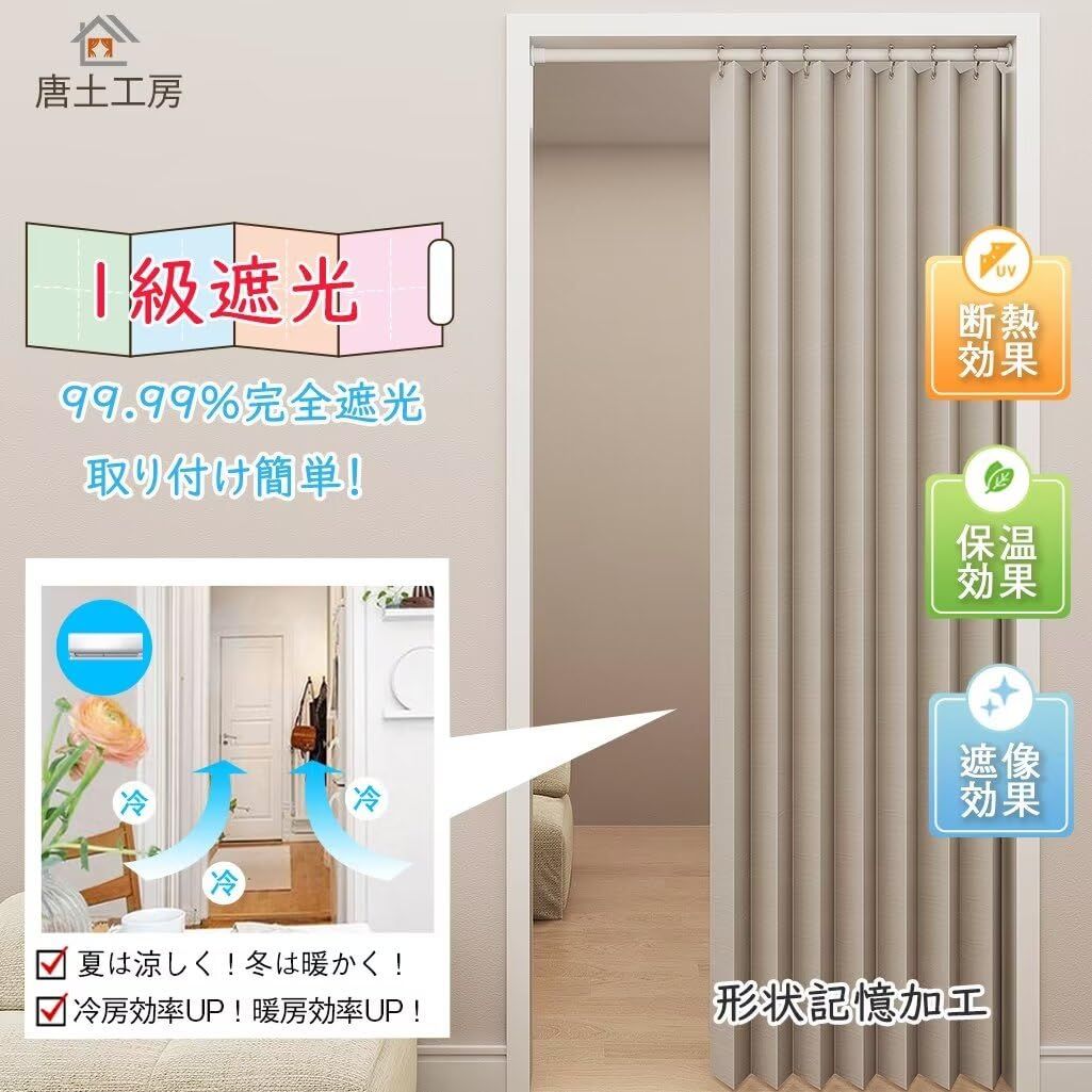 唐土工房 間仕切りカーテン 断熱 のれん 遮光 一級遮光 1級 暖簾 おしゃれ ロング 180cm丈 100cm幅 1枚 アコーディオンカーテン 間仕切り ドアカーテン 突っ張り棒カーテン 防寒保温 防音 無地 厚手 省エネ 冷気遮断 目隠し 形状記憶加工 のレン アコーディオン 洗える ベージュ