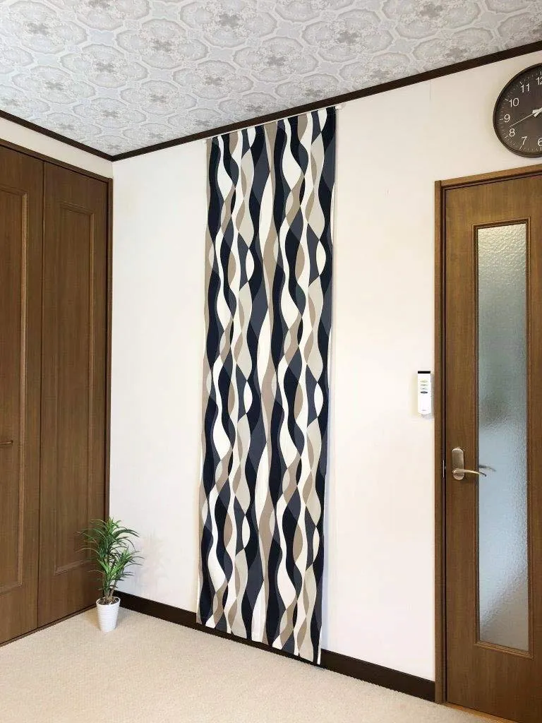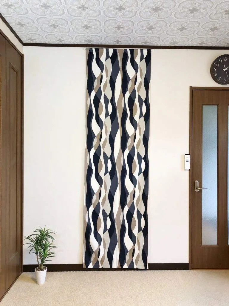 パネルカーテン ロングスクリーン 間仕切り パーテーション 目隠し のれん カーテン 冷暖房効率アップ おしゃれ デザイン 壁掛け タペストリー 北欧 ウエーブ柄 (幅73×丈240 cm)