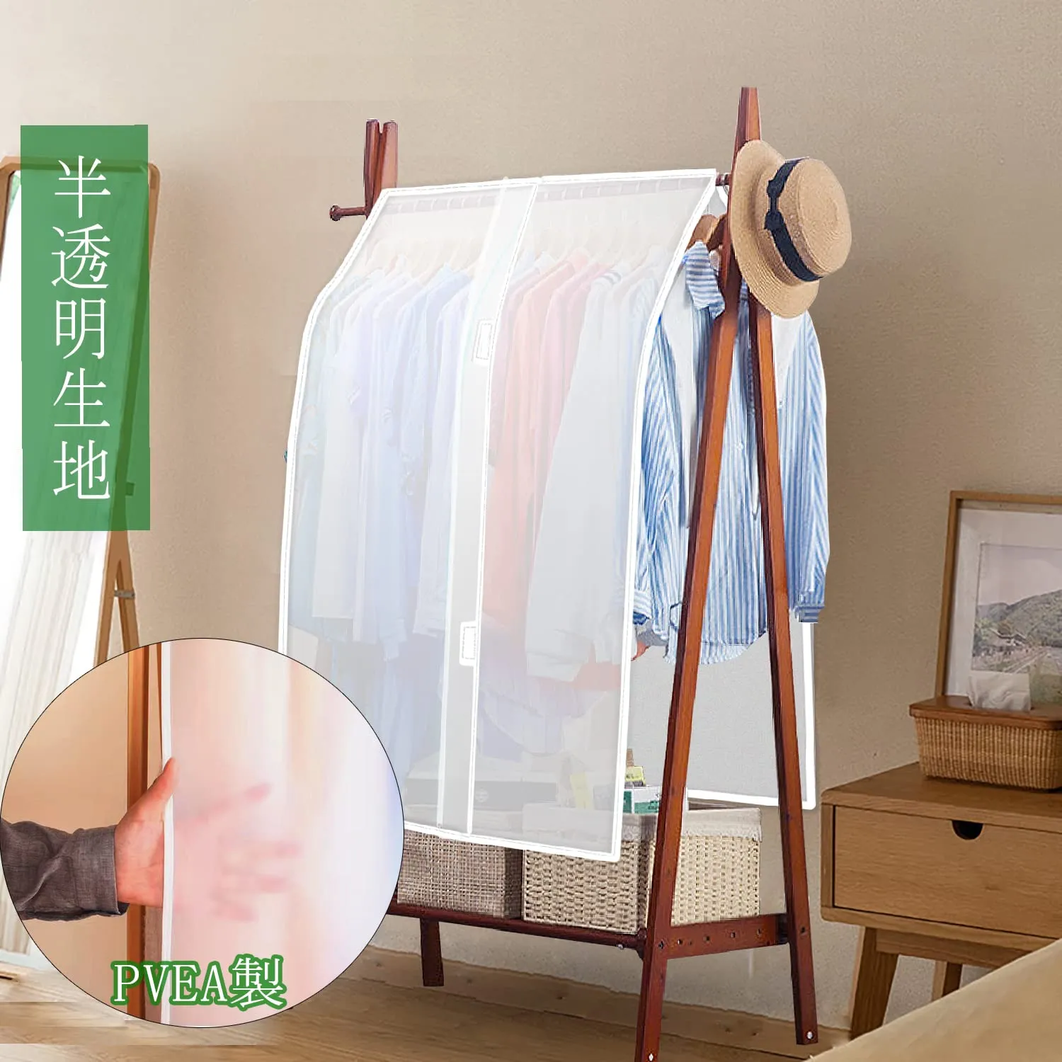 【水洗え、半透明衣類カバー】カバー全体がPEVAで作られ、ハンガーラックに掛けた衣類をホコリから守るのがもちろん、撥水加工もされているため、汚れやホコリの掃除の際は手で洗えて、繰り返す使える衣類カバーです。半透明製で中の内容物を分かりやすく、無地でお部屋に馴染むカラーで、違和感がなくて使え、美観的です。