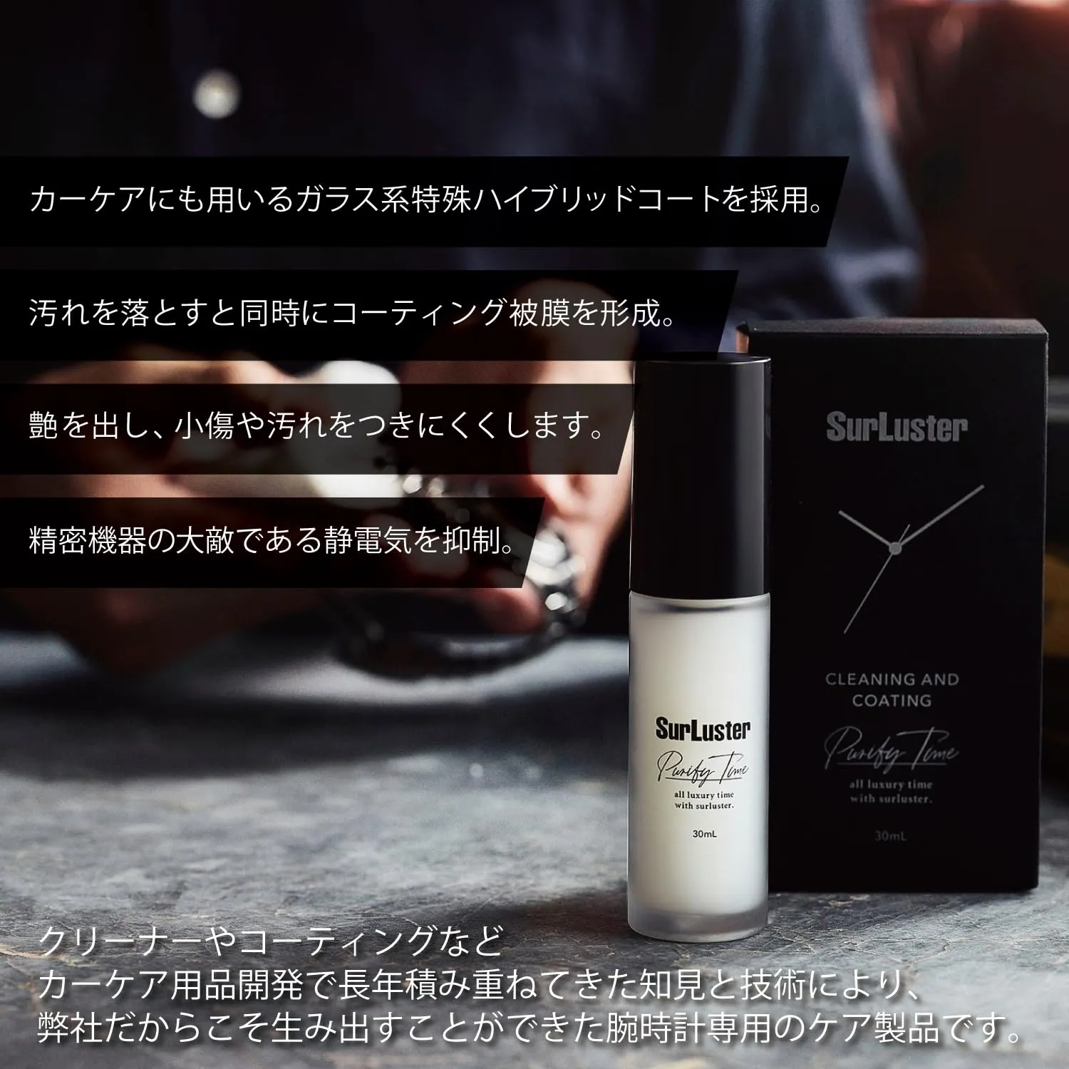 ●今回クリーナーやコーティングなどカーケア用品開発で積みかねてきた知見と技術を最大限活用し、シュアラスターだからこそ生み出すことができる腕時計専用のケア製品が誕生!