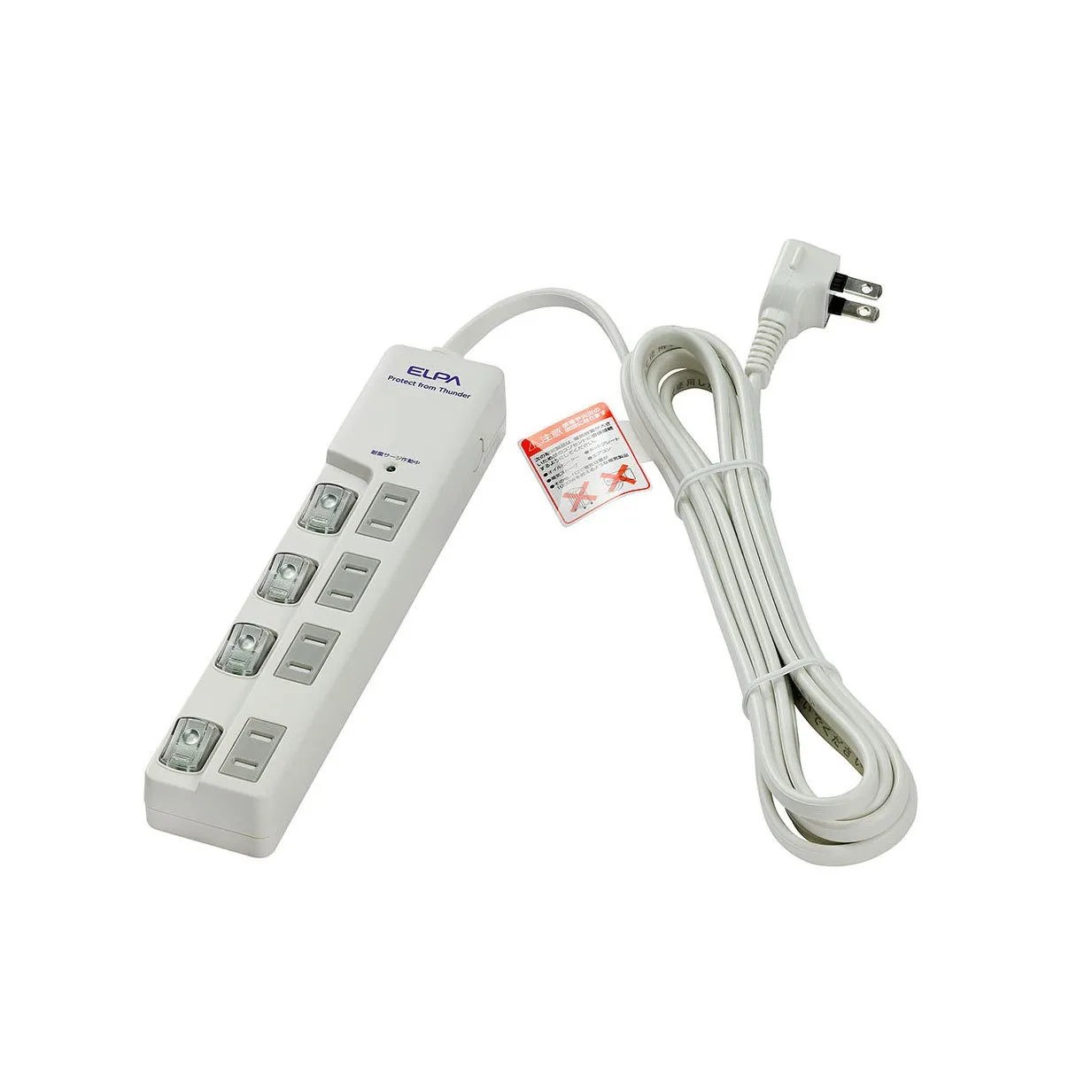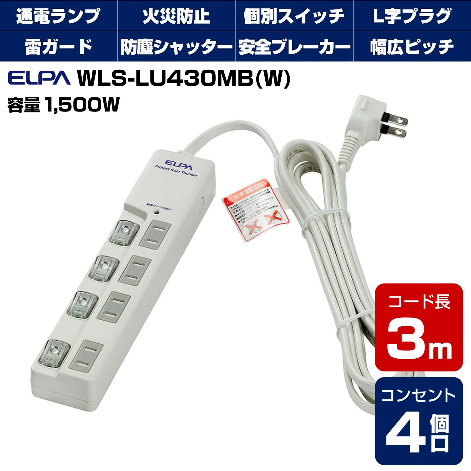 エルパ (ELPA) スイッチ付タップ 雷ガード コンセント 延長コード LED 上差し 4個口 3m WLS-LU430MB(W)