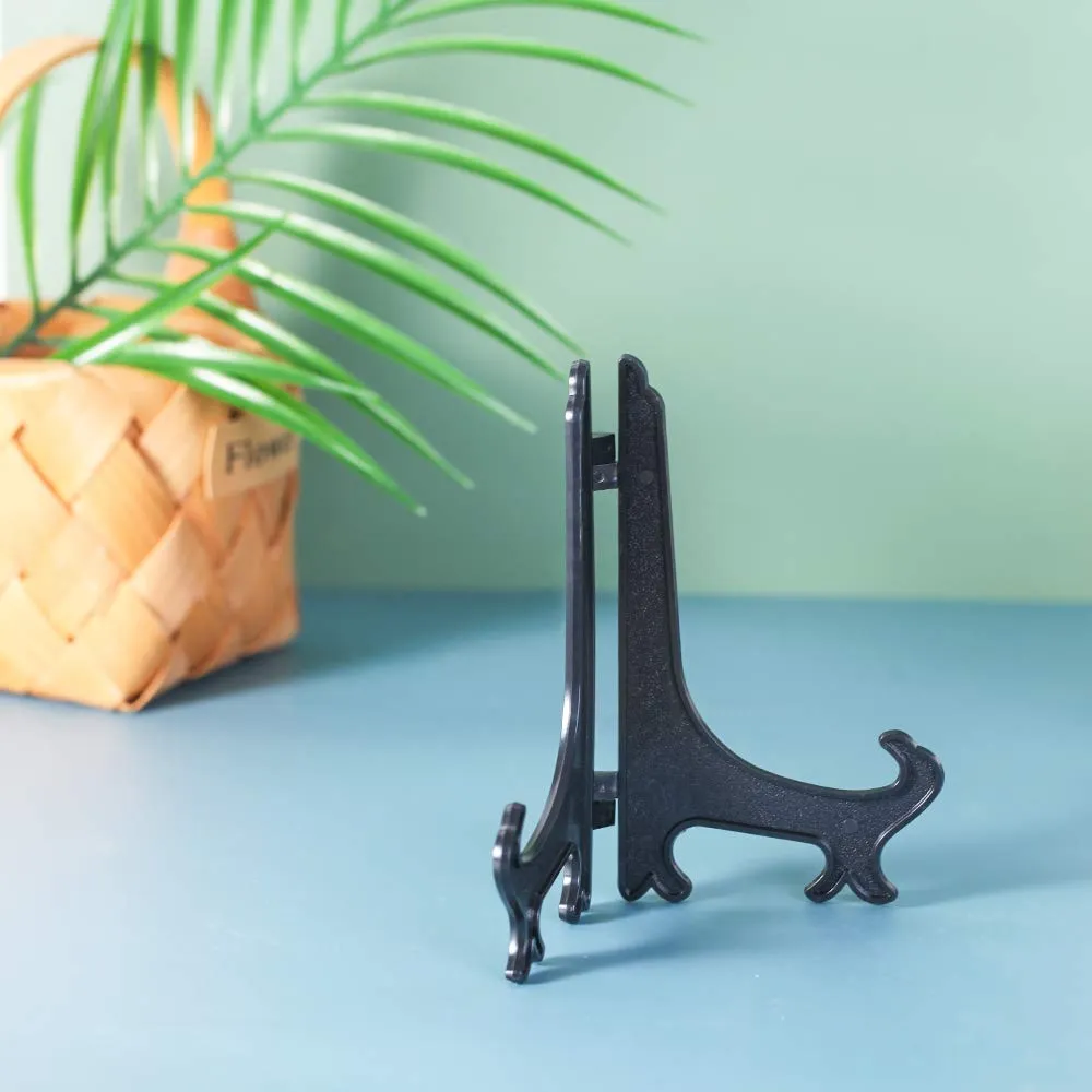 洗練された軽量デザイン: 耐久性のある軽量プラスチックを使用し、マットなブラック仕上げで上品に。カードや写真、フォトフレーム、プレートなどのディスプレイに最適です。