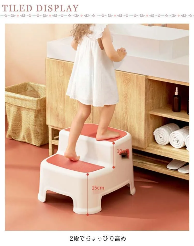 ステップ キッズ 踏み台 子供 2段 高さ25cm 子ども用 男の子 女の子 頑丈 丈夫 脚立 足台 洗面所 洗面台 トイレ 歯磨き 手洗い うがい キッチン お手伝い