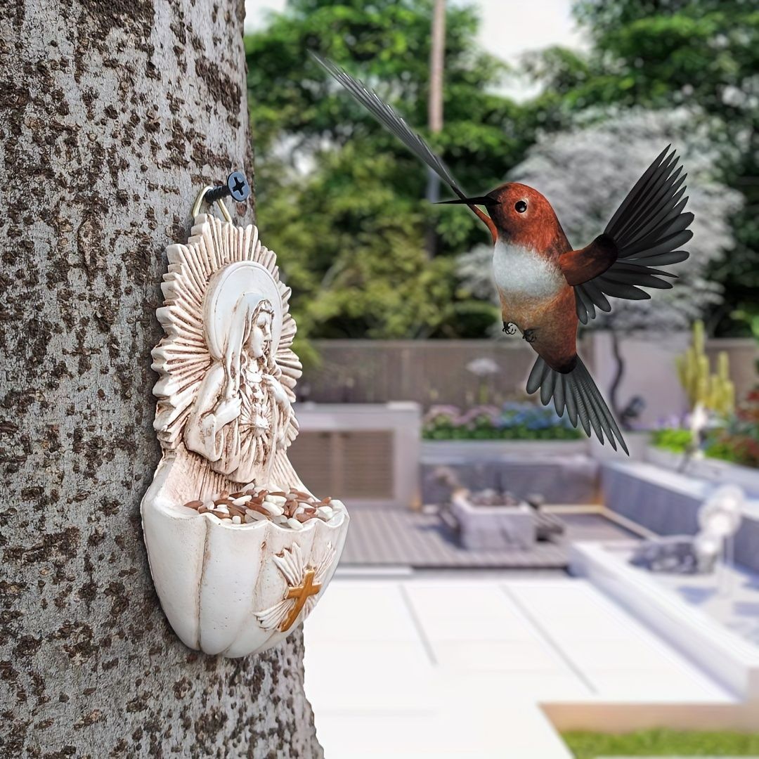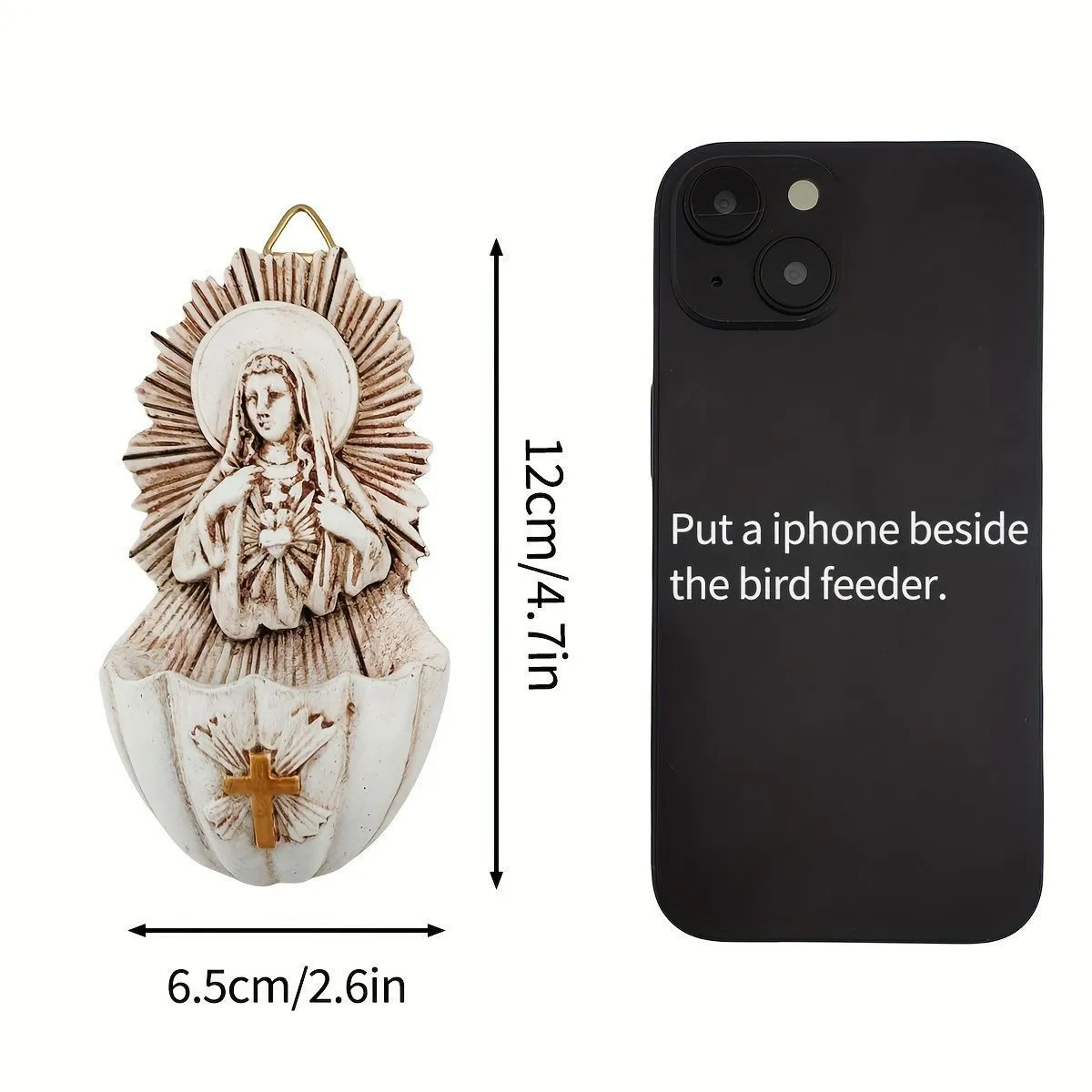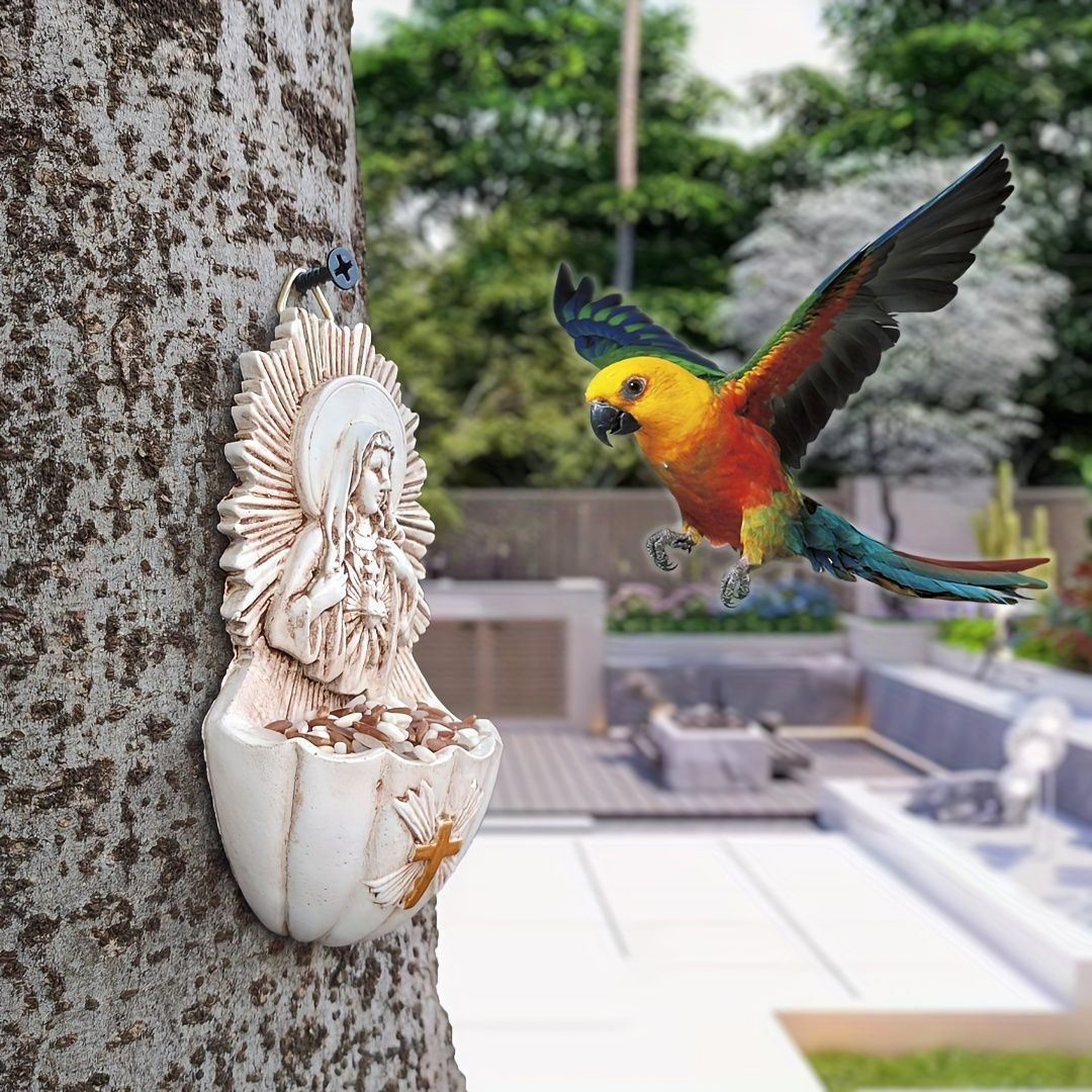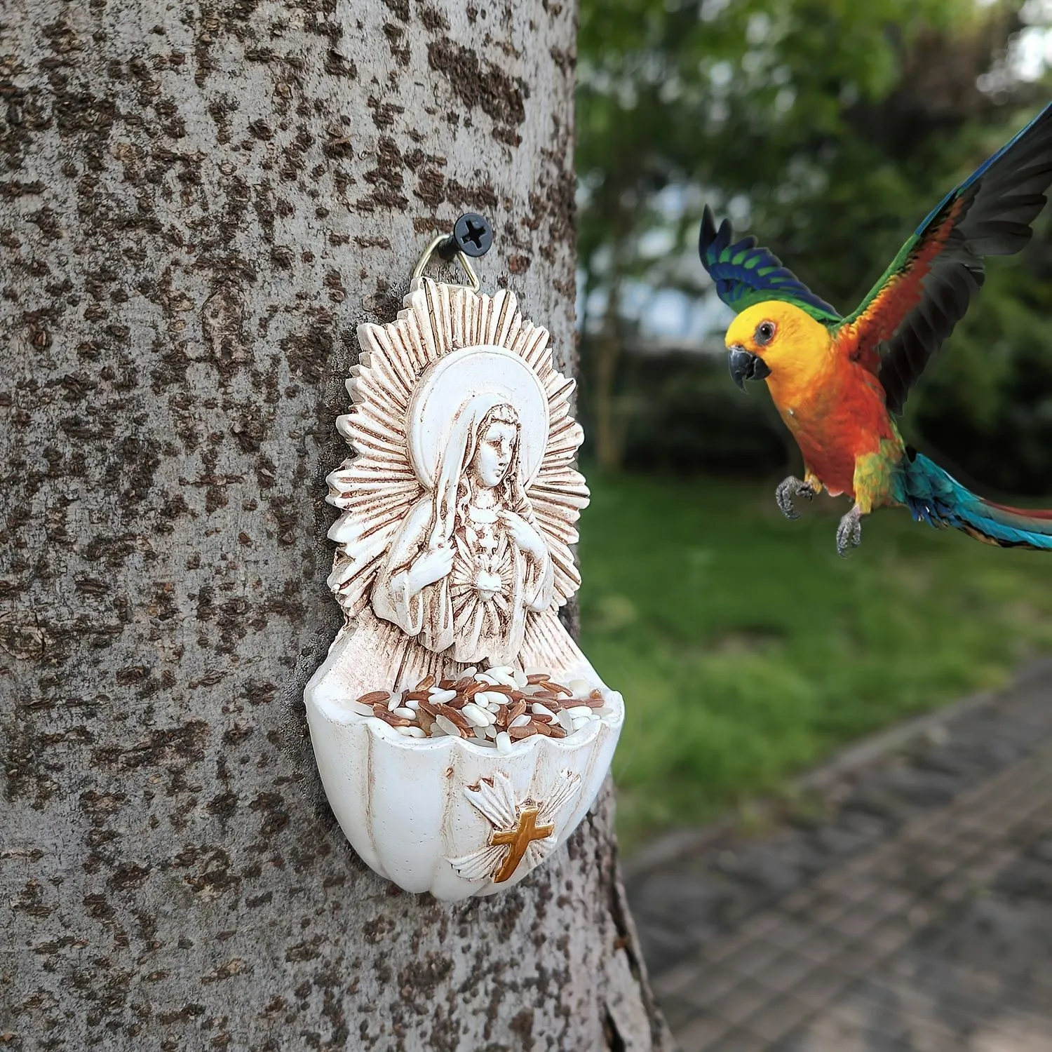 バードフィーダー 小鳥 野鳥 用 給餌器 餌箱 餌台えさ置き 壁掛け 取り付け簡単 宗教的オブジェ キリスト 餌入れ 鳥 ガーデンオブジェ インテリア ガーデニング ペット食器 野鳥観察 樹脂 バード用品 ホワイト